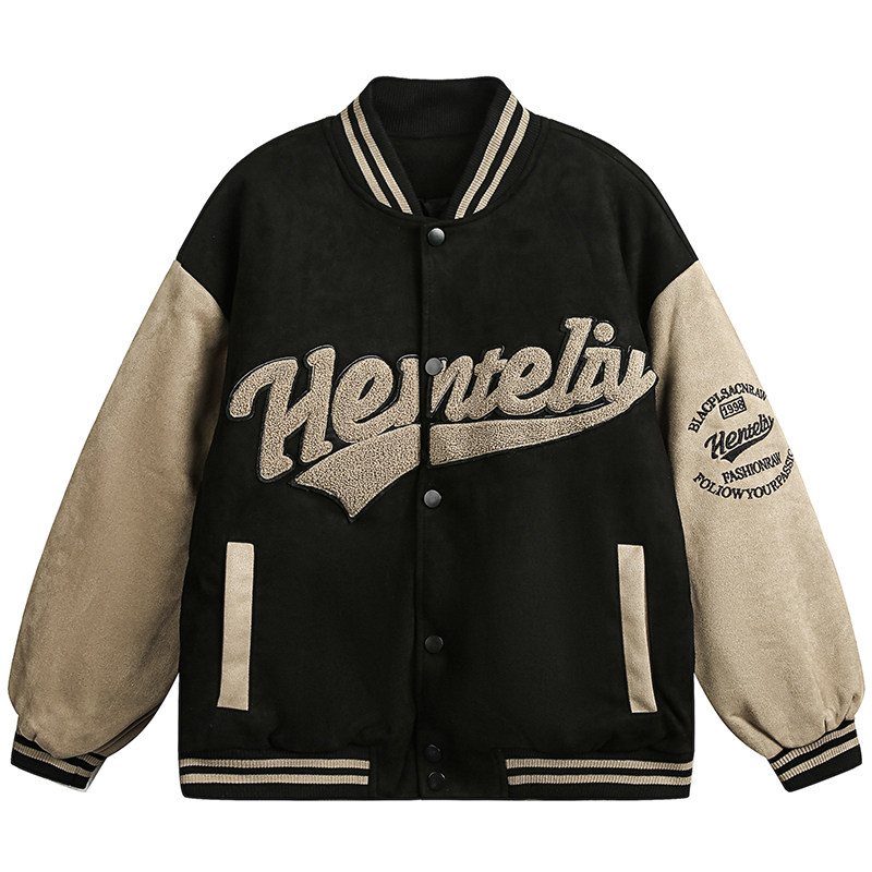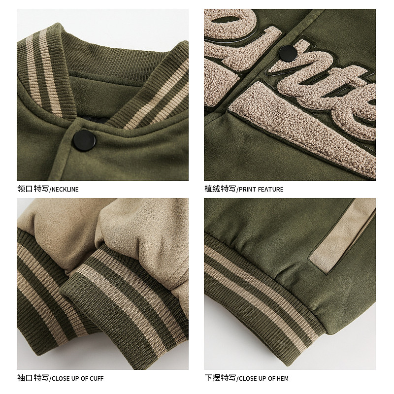 美式复古麂皮绒拼接夹棉棒球服