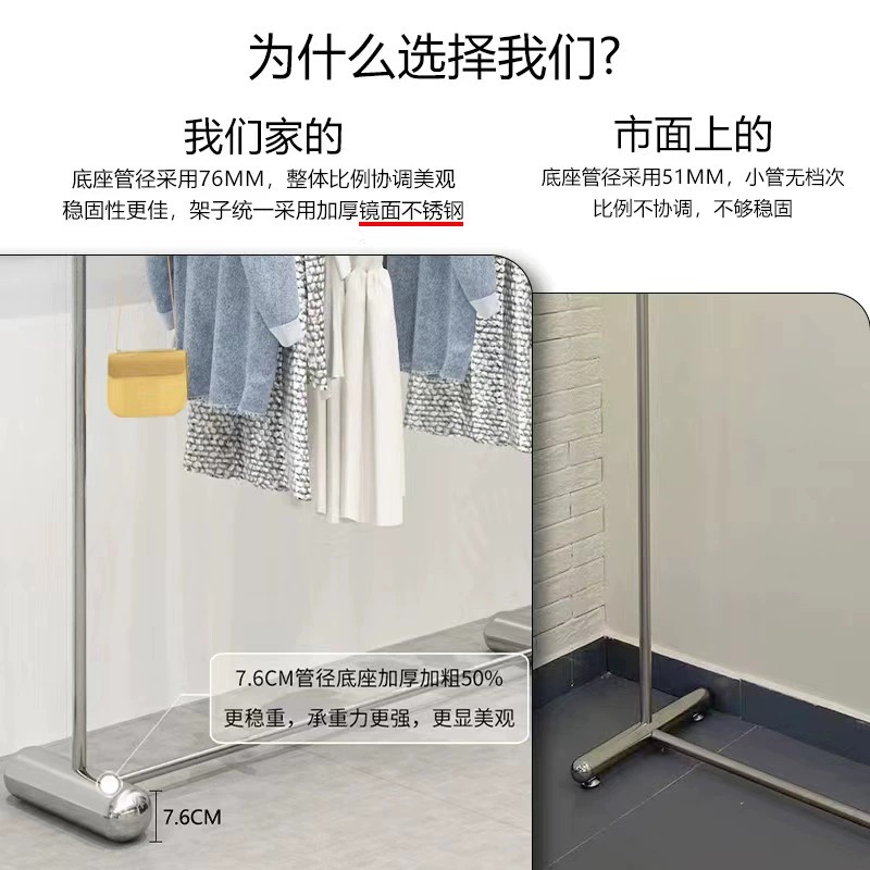 服装店店落地式不锈钢展示架女装挂衣服架子中岛货架陈列架晾衣架