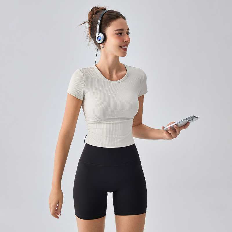 Mitaogirl肯豆短袖T恤女2025夏季新款白色运动上衣修身显瘦瑜伽服