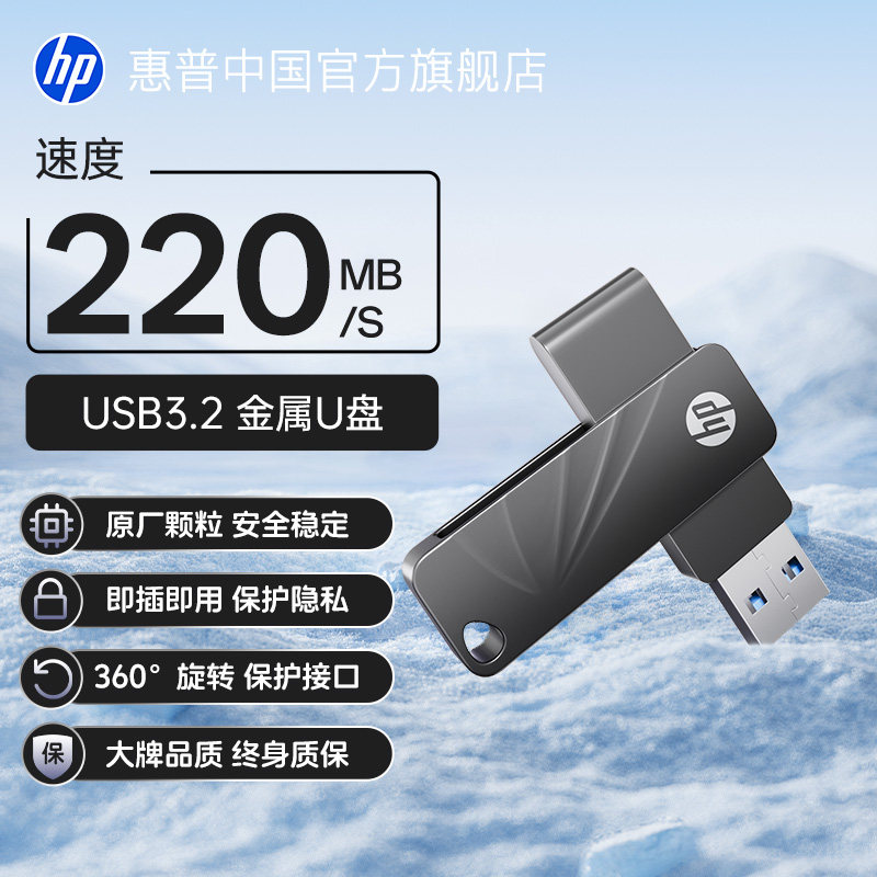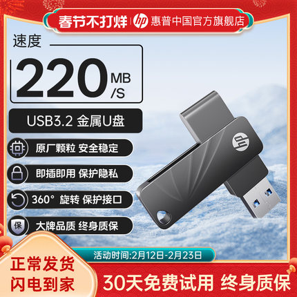 hp惠普旗舰店官方正品大容量金属u盘高速电脑手机两用办公优盘