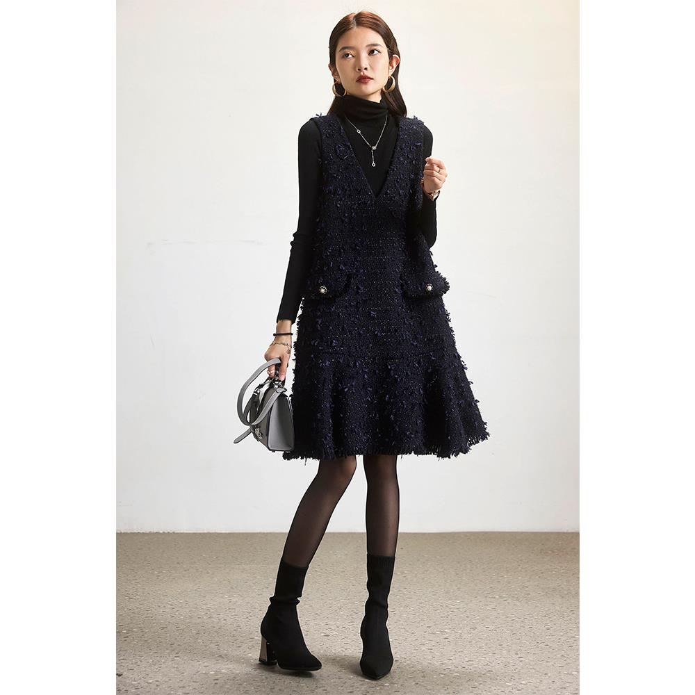 爵莱菲大码小香风亮丝背心连衣裙女2025年早秋新款V领欧货宽松