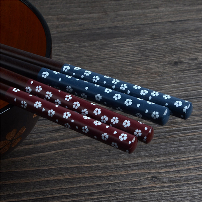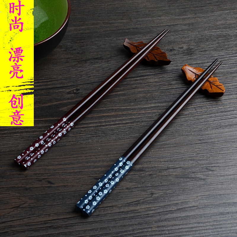 樱花家用日本尖头筷子家庭装10双实木质防滑情侣礼品儿童学生户外