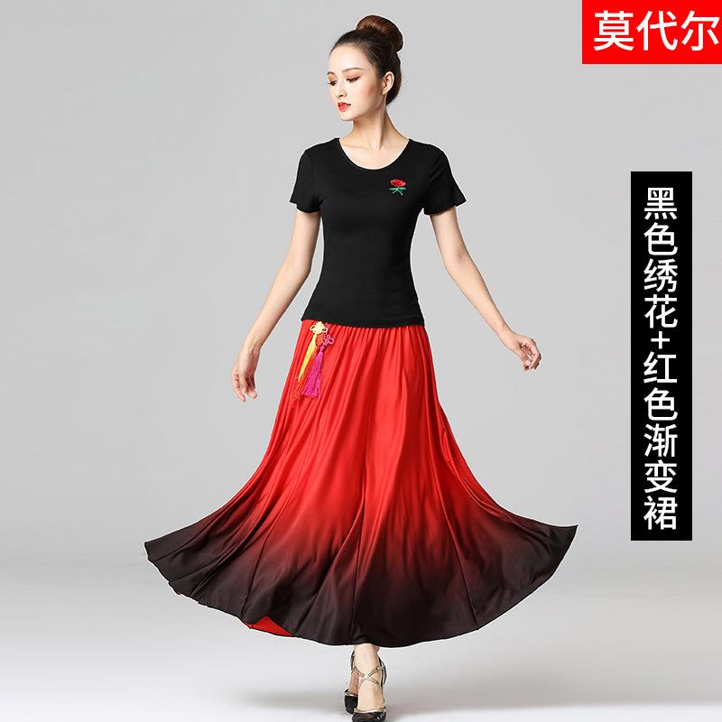 广场舞服装套装中老年新款跳舞衣服女莫代尔上衣现代舞民族风套裙