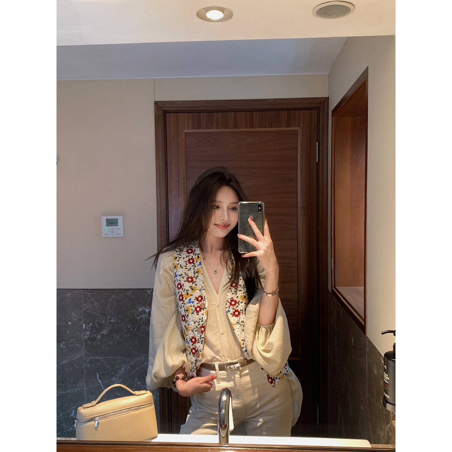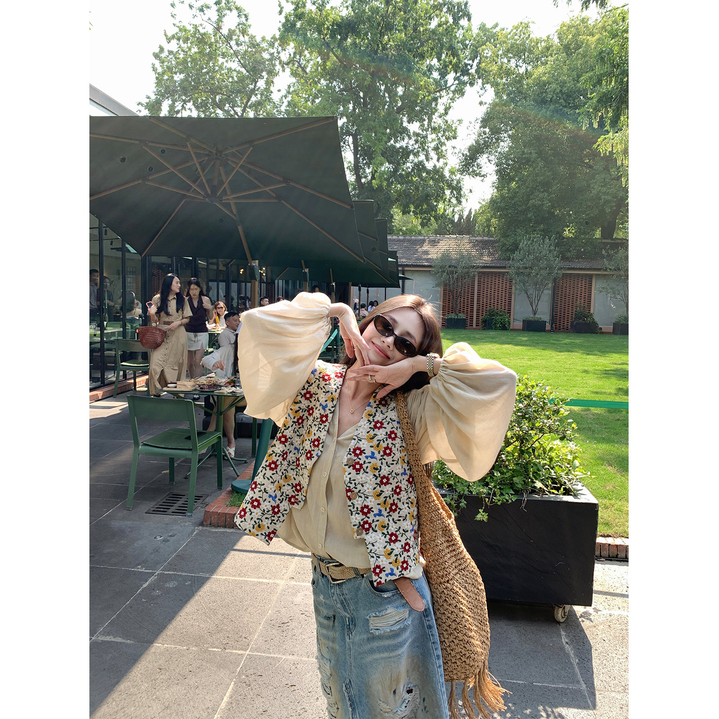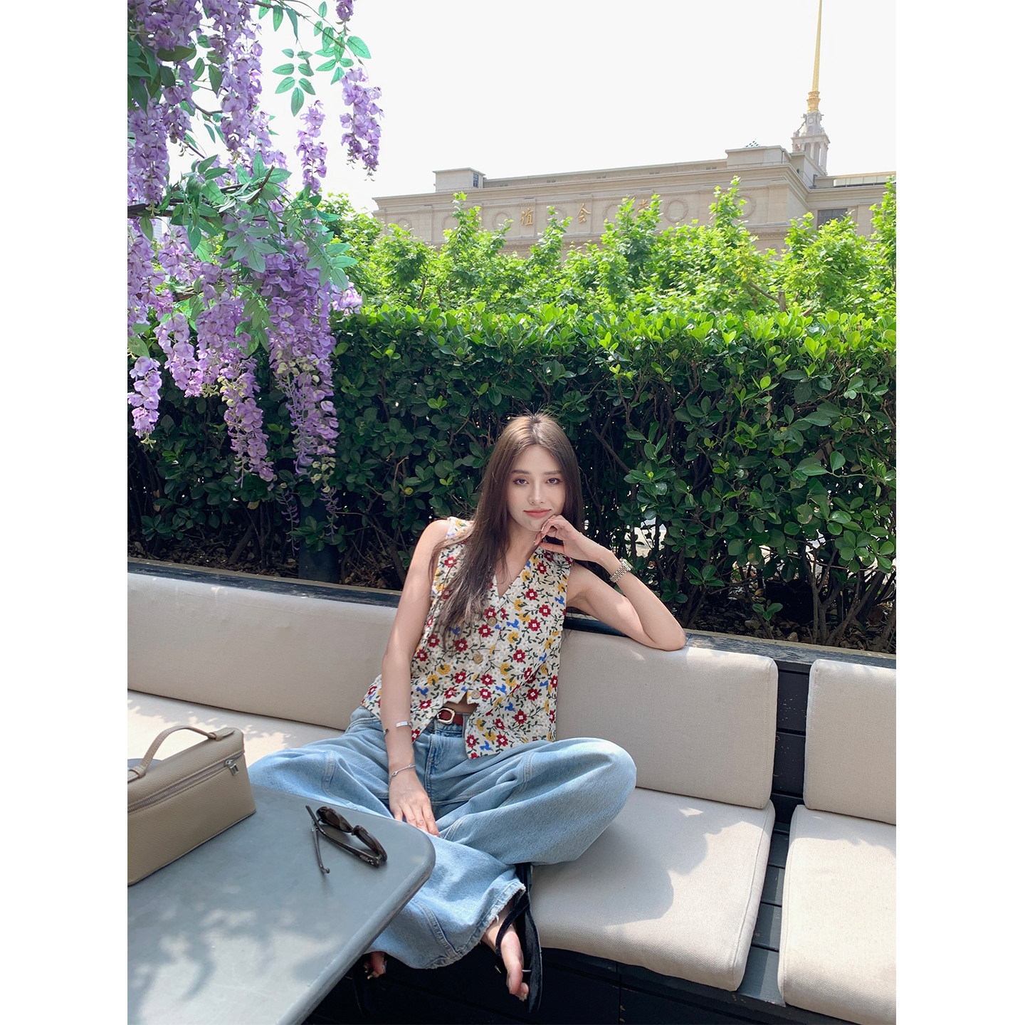 NanaByNana【4折福利】重工小花刺绣马甲套装女夏亚麻短裤两件套