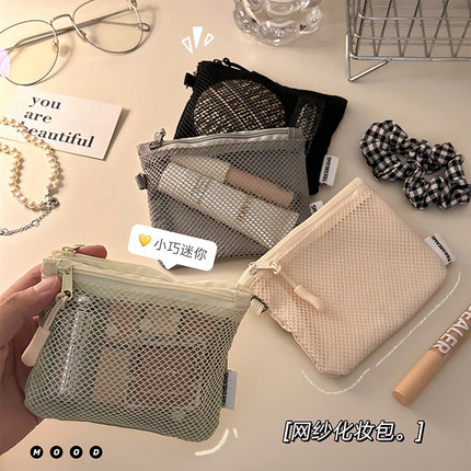 网格收纳包迷你便携式随身零钱包化妆包数据线耳机包小杂物收纳袋