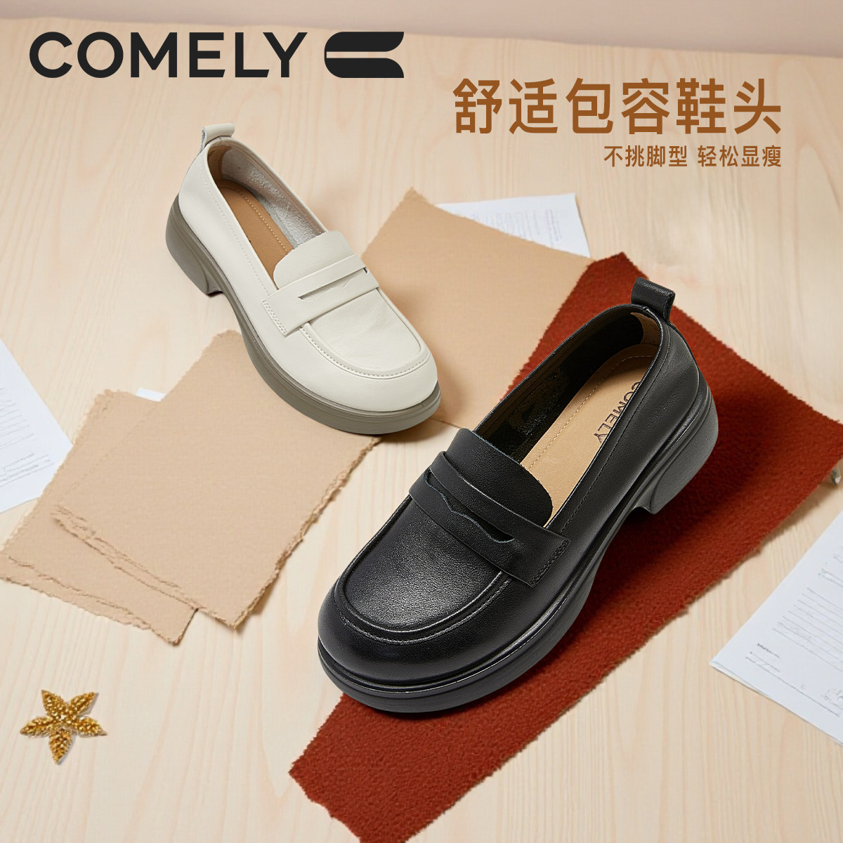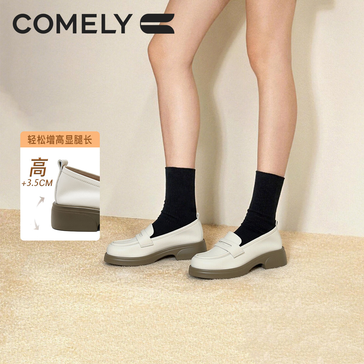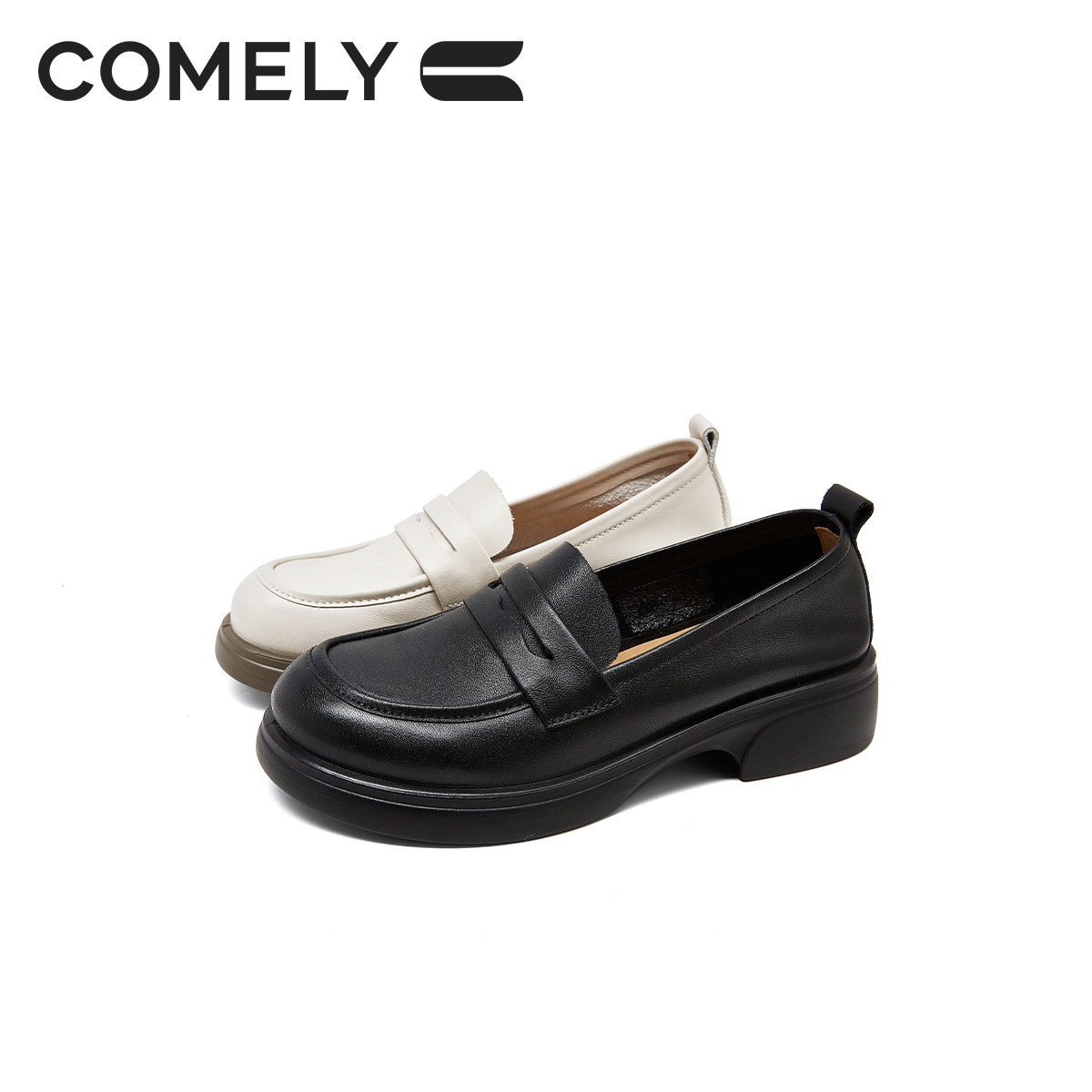 康莉商场同款乐福鞋女2026年春季新款大码真皮厚底小皮鞋61032
