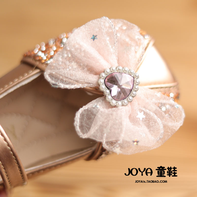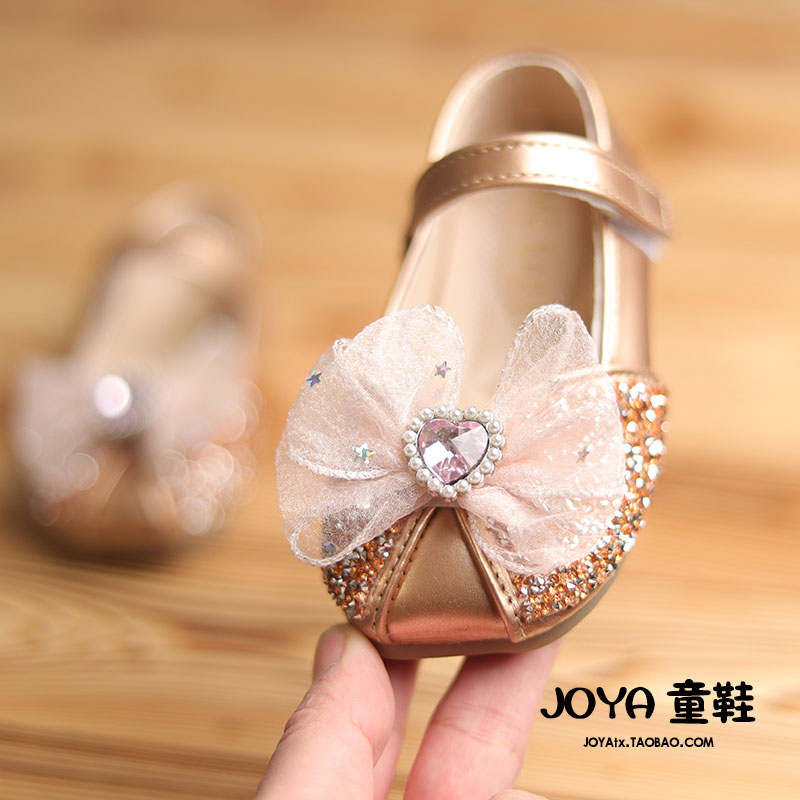 女童金色小皮鞋2025春秋季新款宝宝单鞋演出鞋韩版爱心水晶公主鞋