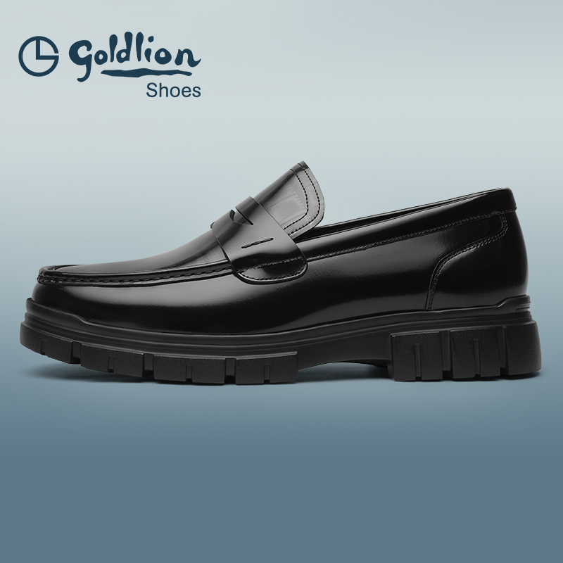 金利来男鞋 轻便一脚蹬商务皮鞋男士真皮厚底耐磨套脚鞋乐福鞋