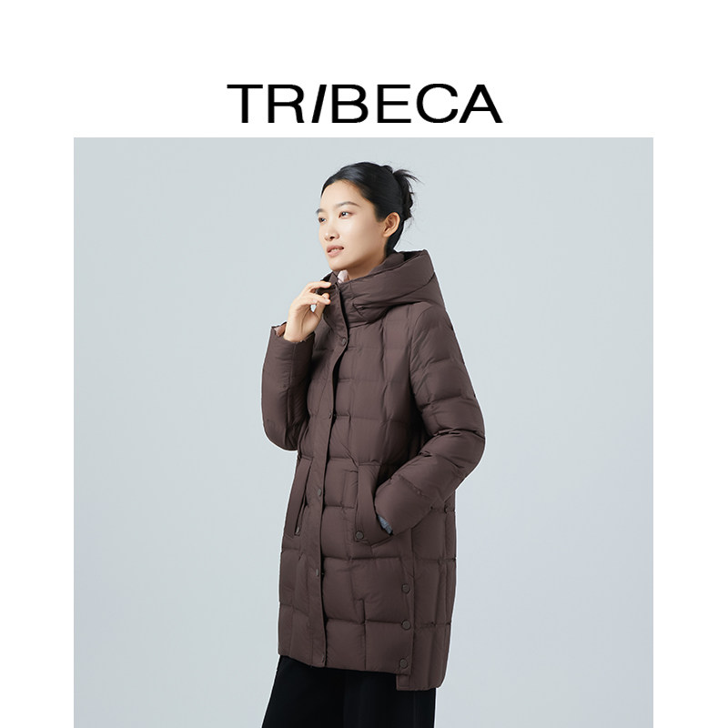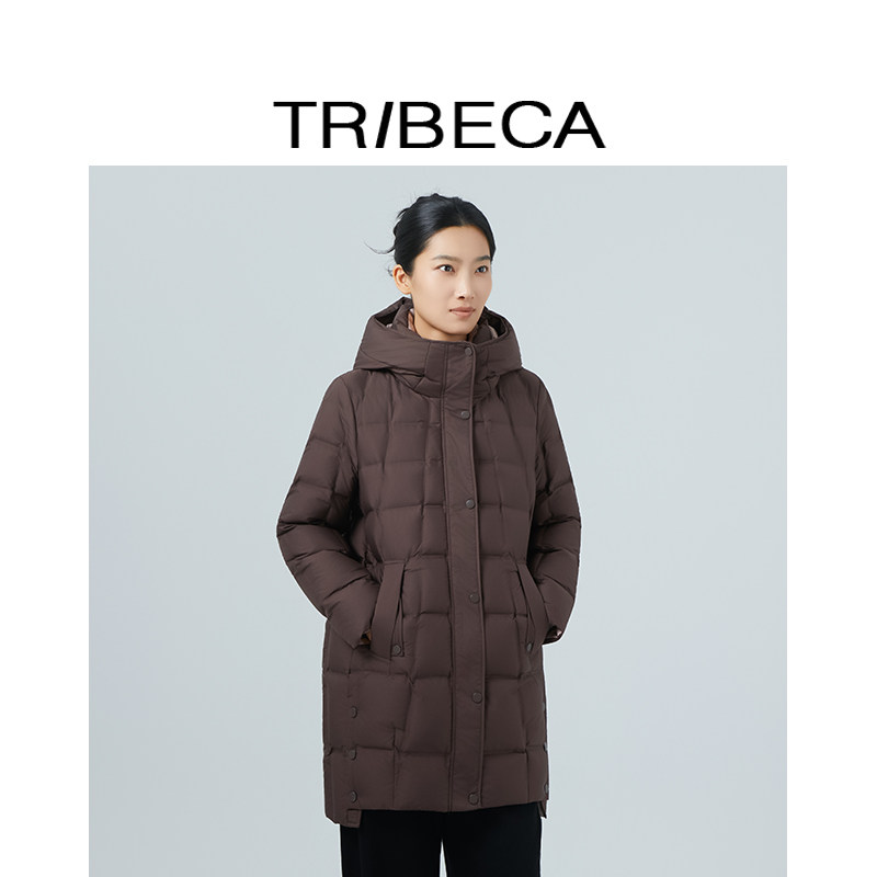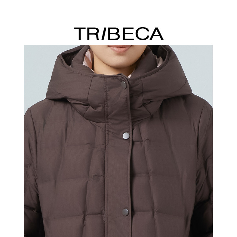 TRIBECA翠贝卡2025冬新款商场同款纯色直筒连帽中长款羽绒服女