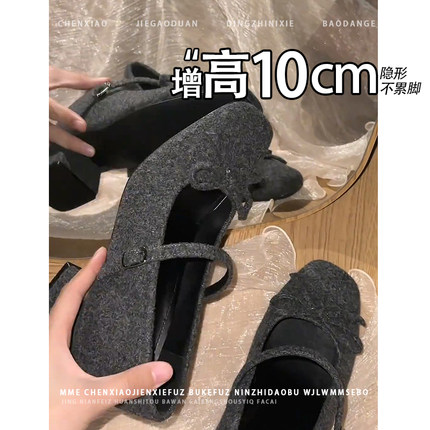 不累脚!小个子内增高10CM玛丽珍鞋2025秋冬新款一字扣浅口单鞋女