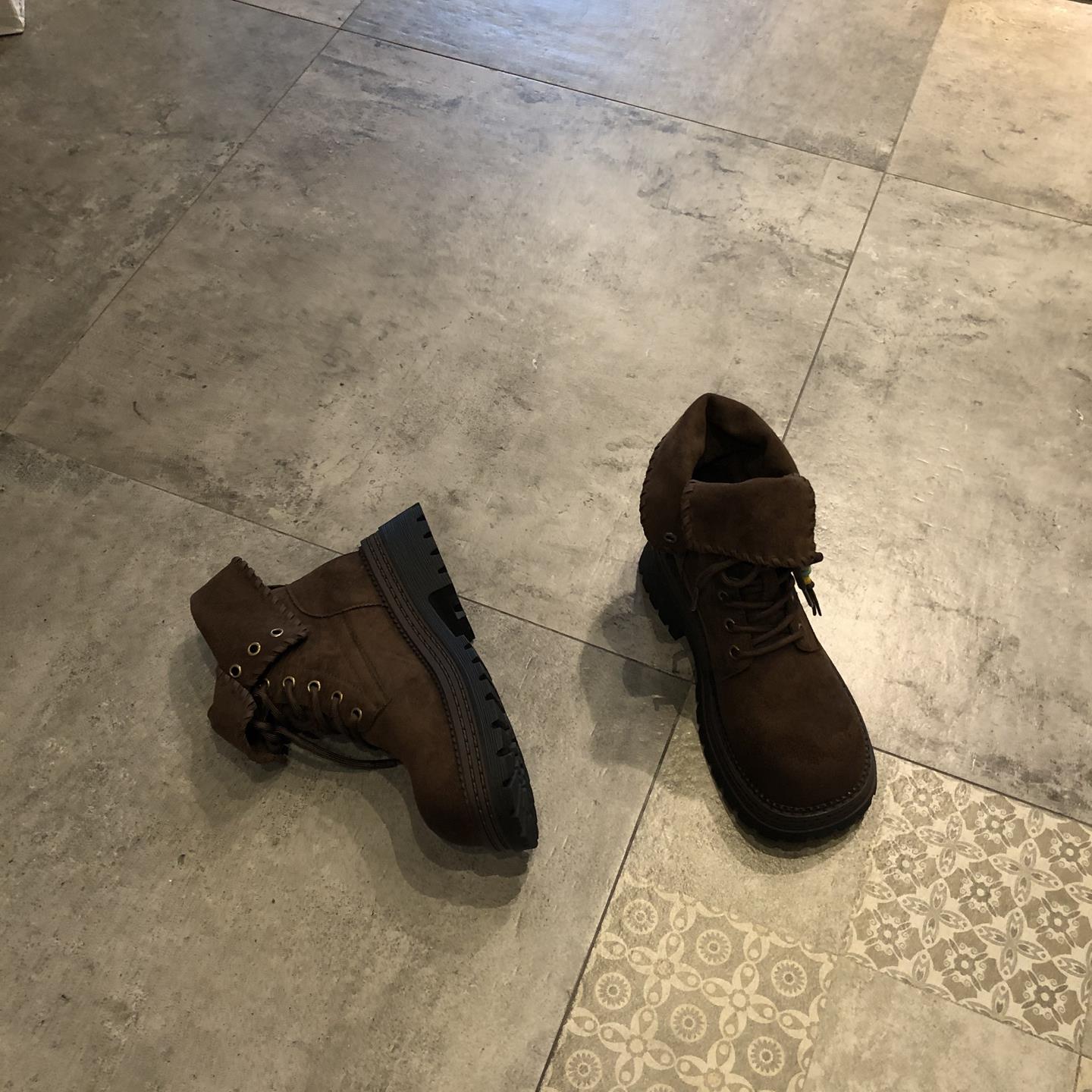 2025秋季新款时尚百搭圆头厚底舒适女靴子复古擦色真皮马丁靴短靴