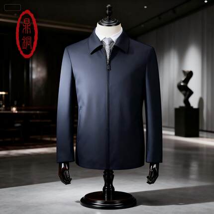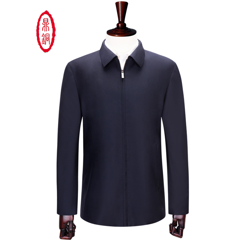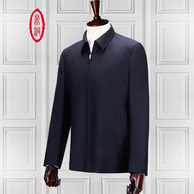鼎铜羊毛夹克男中年男装翻领商务高端男士公务行政干部服春秋外套