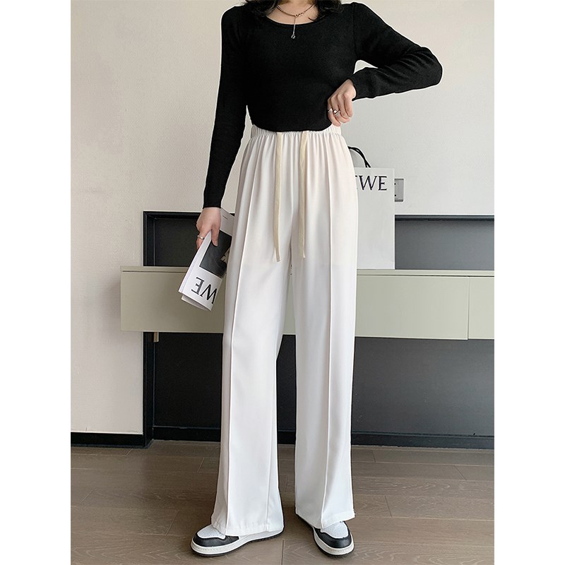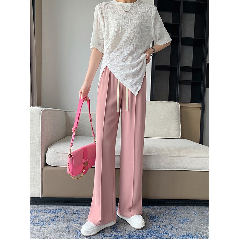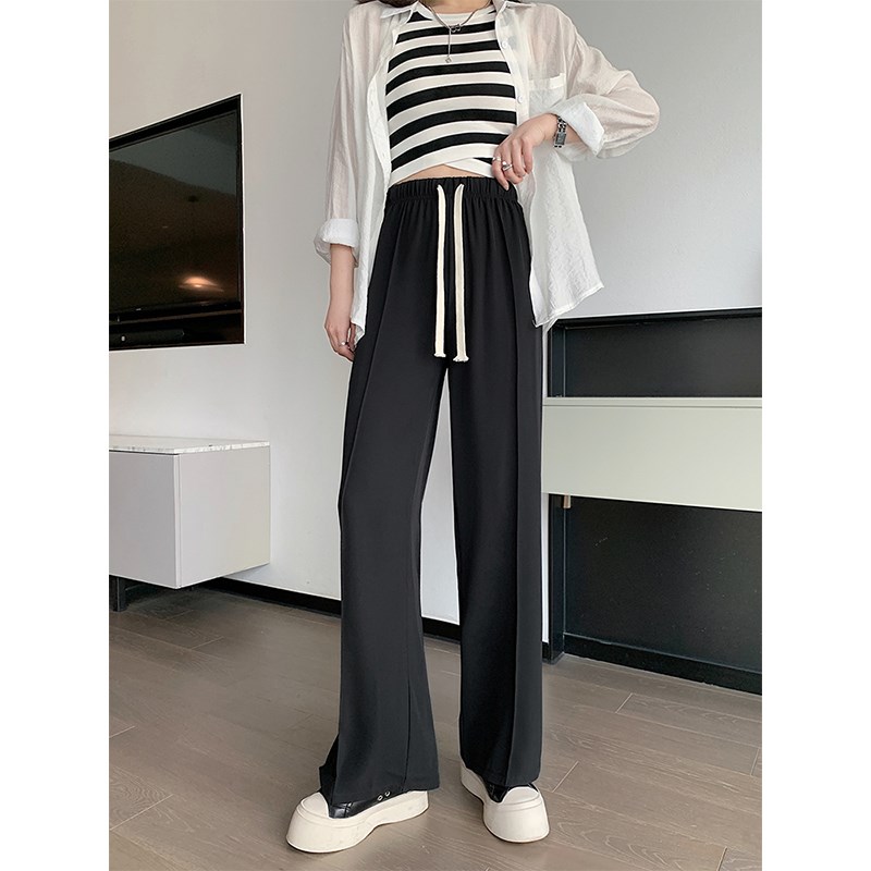 梨形身材裤子女胖妹妹夏季高腰显瘦开叉阔腿裤大码垂感西装休闲裤
