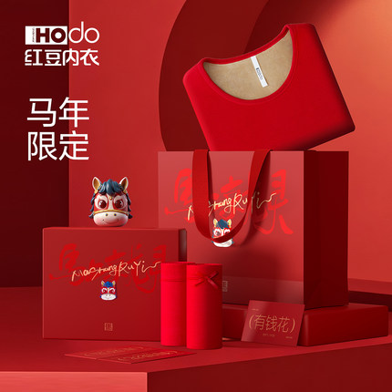 红豆情侣红色本命年秋衣秋裤马年男女士保暖内衣内裤袜子礼物礼盒