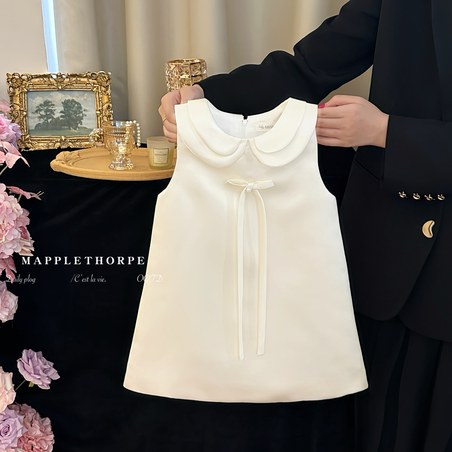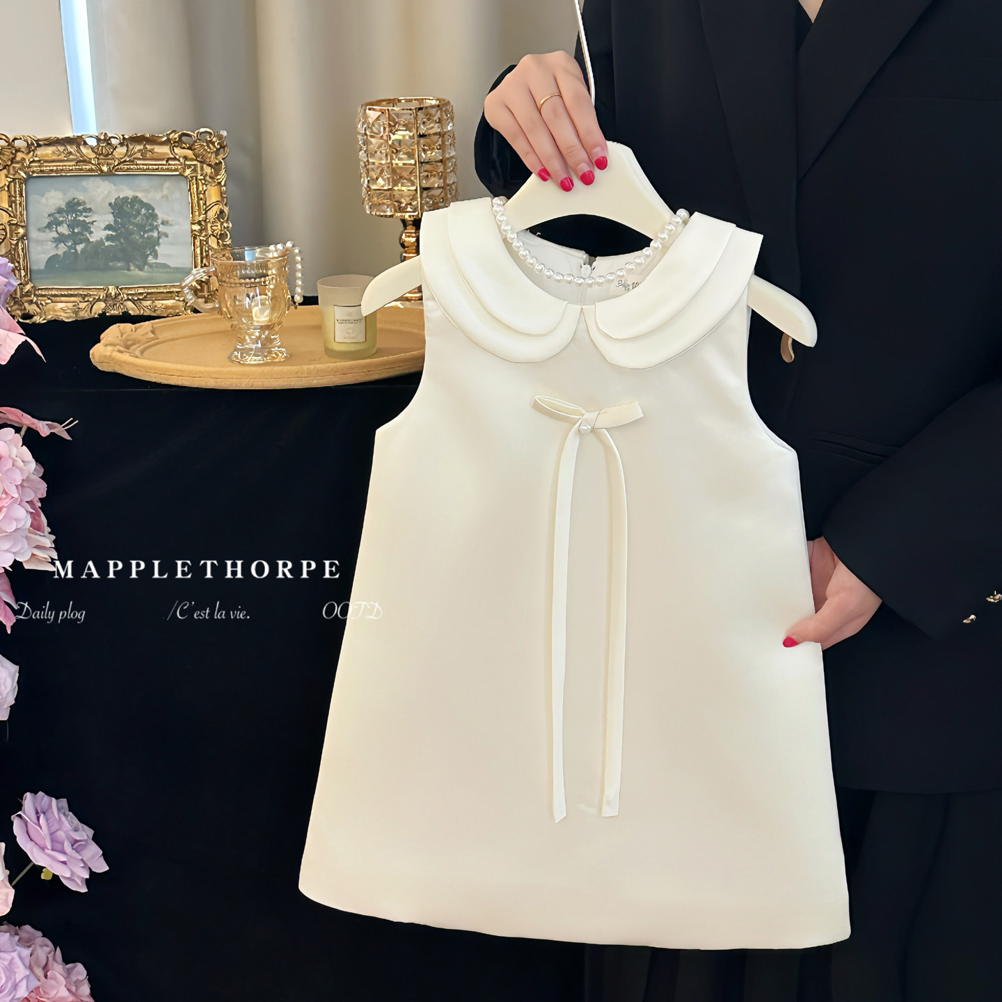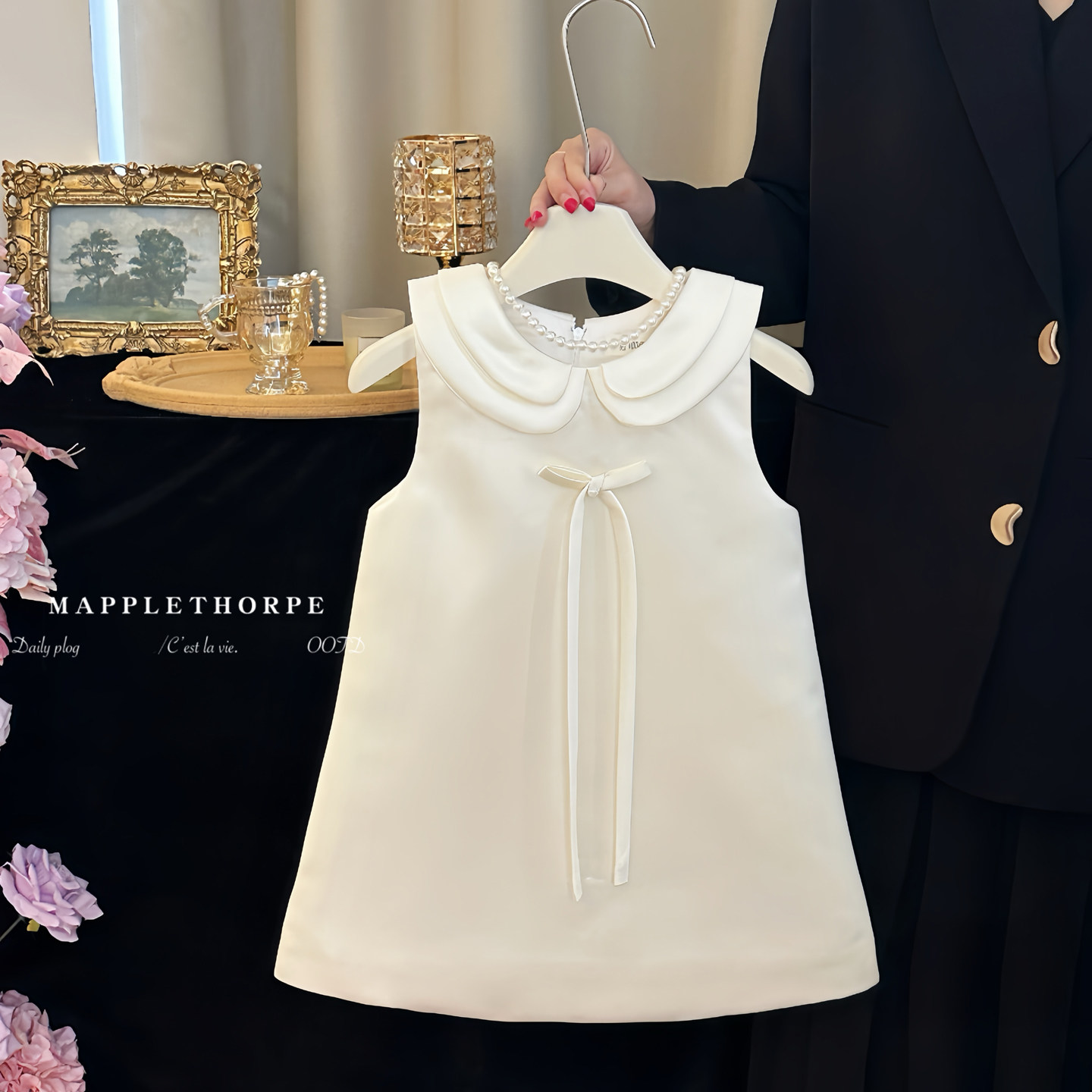 女童生日礼服裙白色气质蝴蝶结背心裙宝宝周岁宴裙公主洋气连衣冬