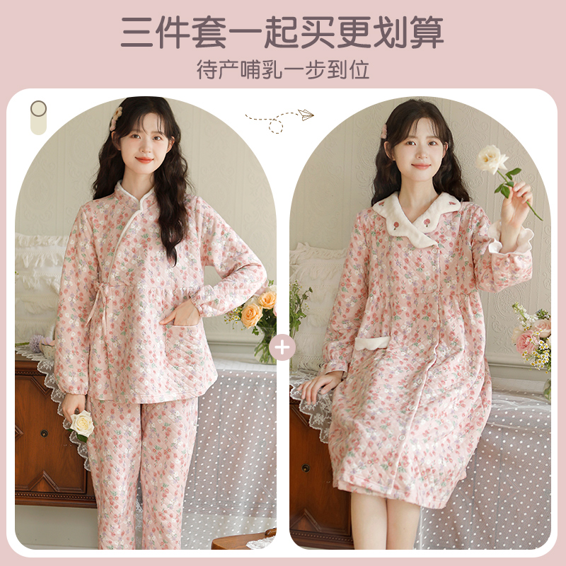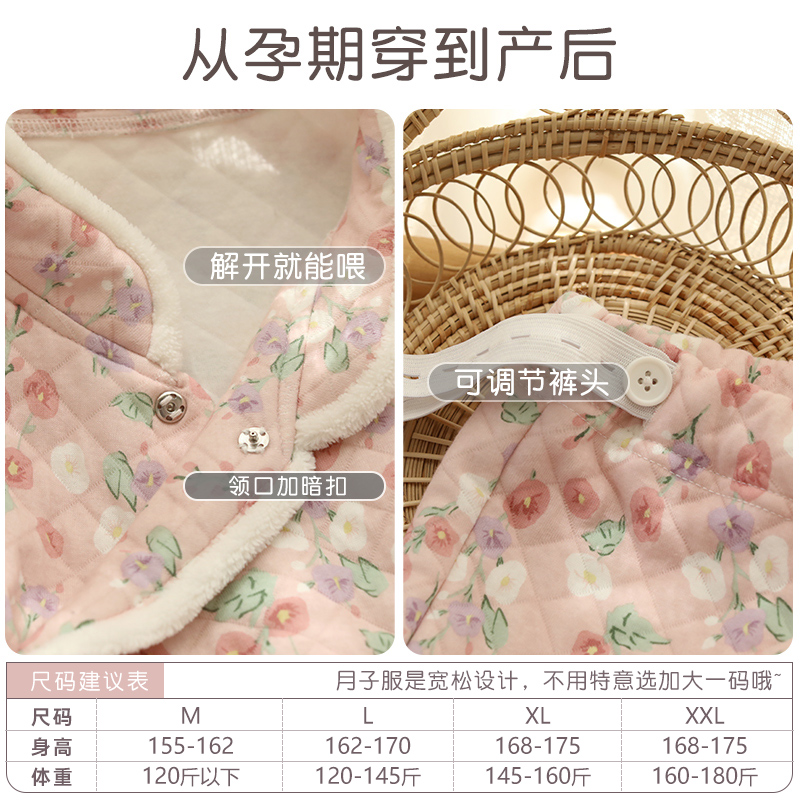 富朵秋冬月子服空气棉孕产妇睡衣产后喂奶衣夹棉保暖春孕妇家居服