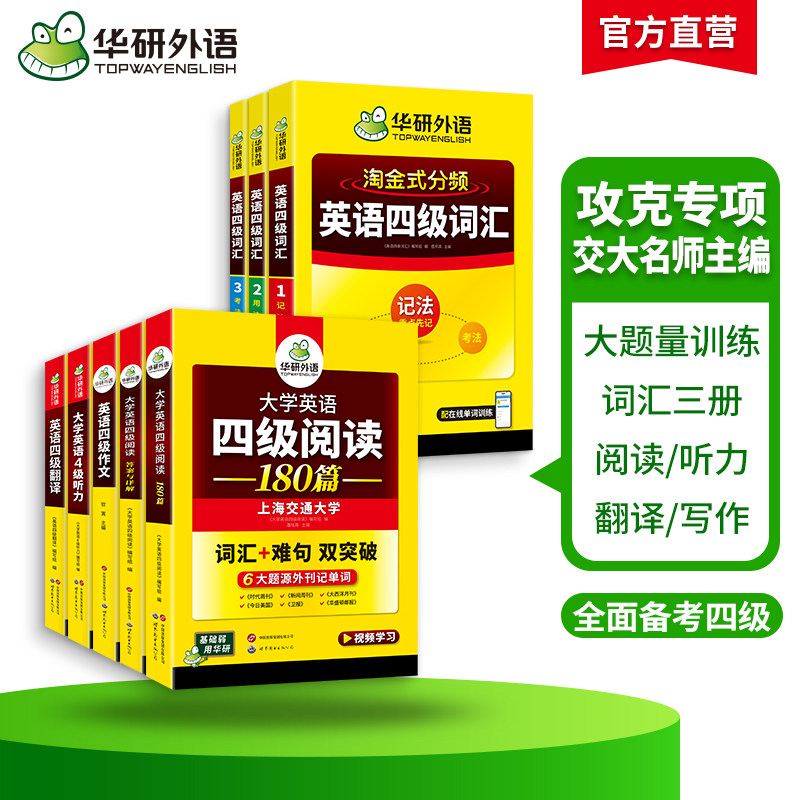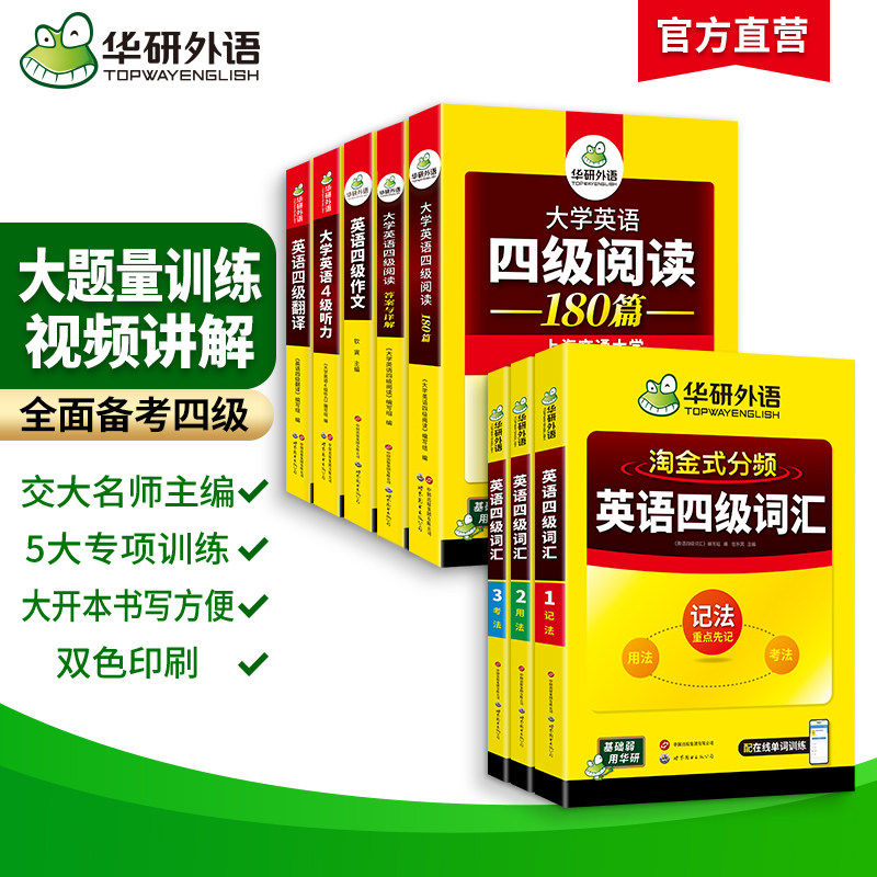 华研外语备考2026年6月大学英语四级词汇单词听力阅读理解翻译与写作范文强化专项训练书复习资料全套cet4四六级历年考试真题试卷