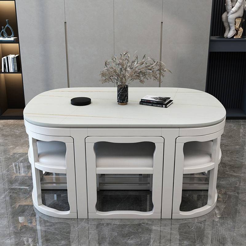 大理石餐桌椅组合方圆形实木餐桌简约现代小户型家用网红隐形饭桌