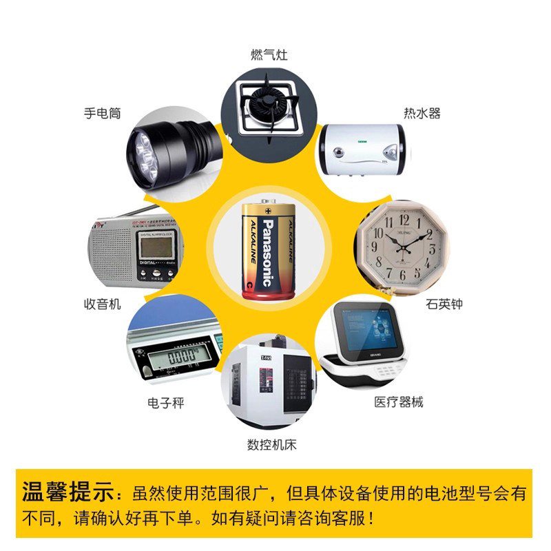 松下2号1号碱性电池二号C型单2形LR14面包超人LR20花洒摇椅费雪玩具收音机手电筒中号通3号三号1.5v一号
