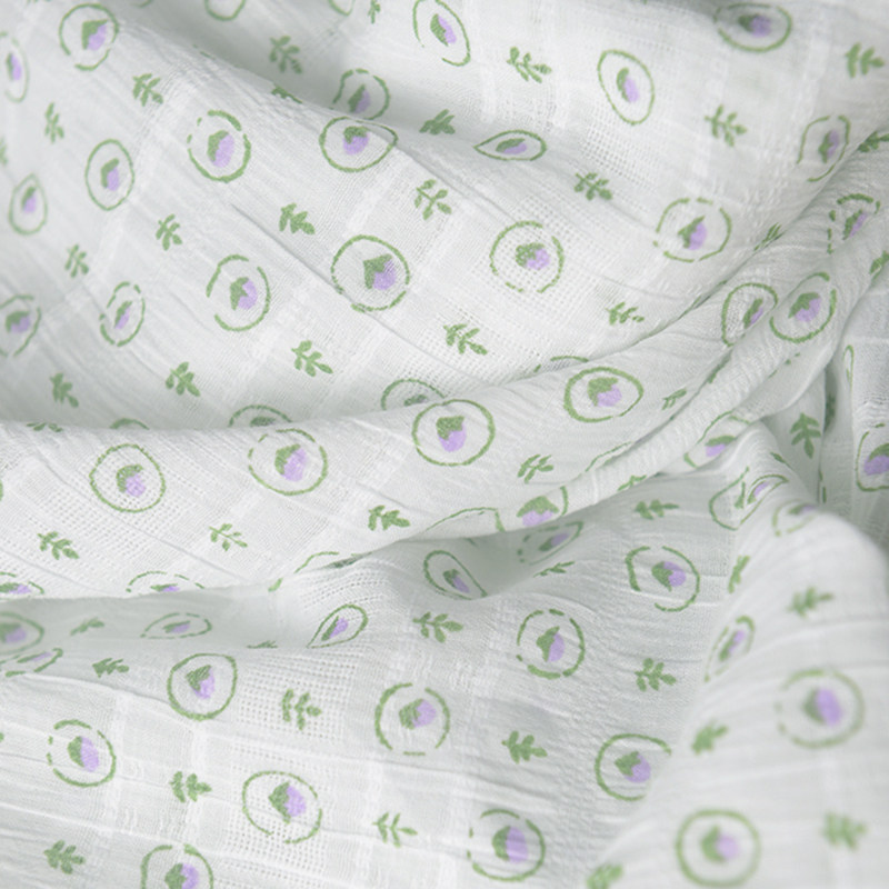 紫绿圆小花织条褶皱棉布原创衣服