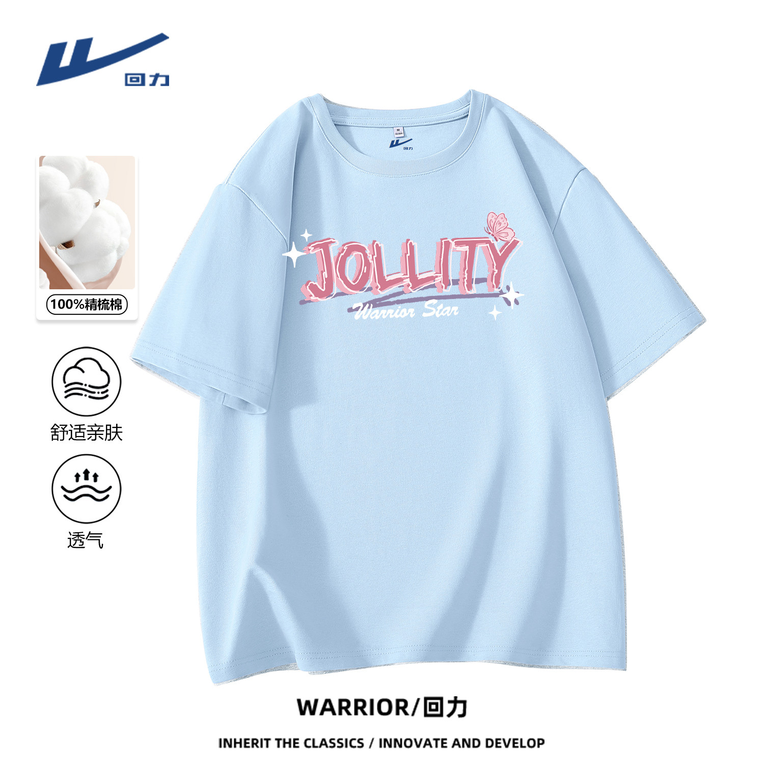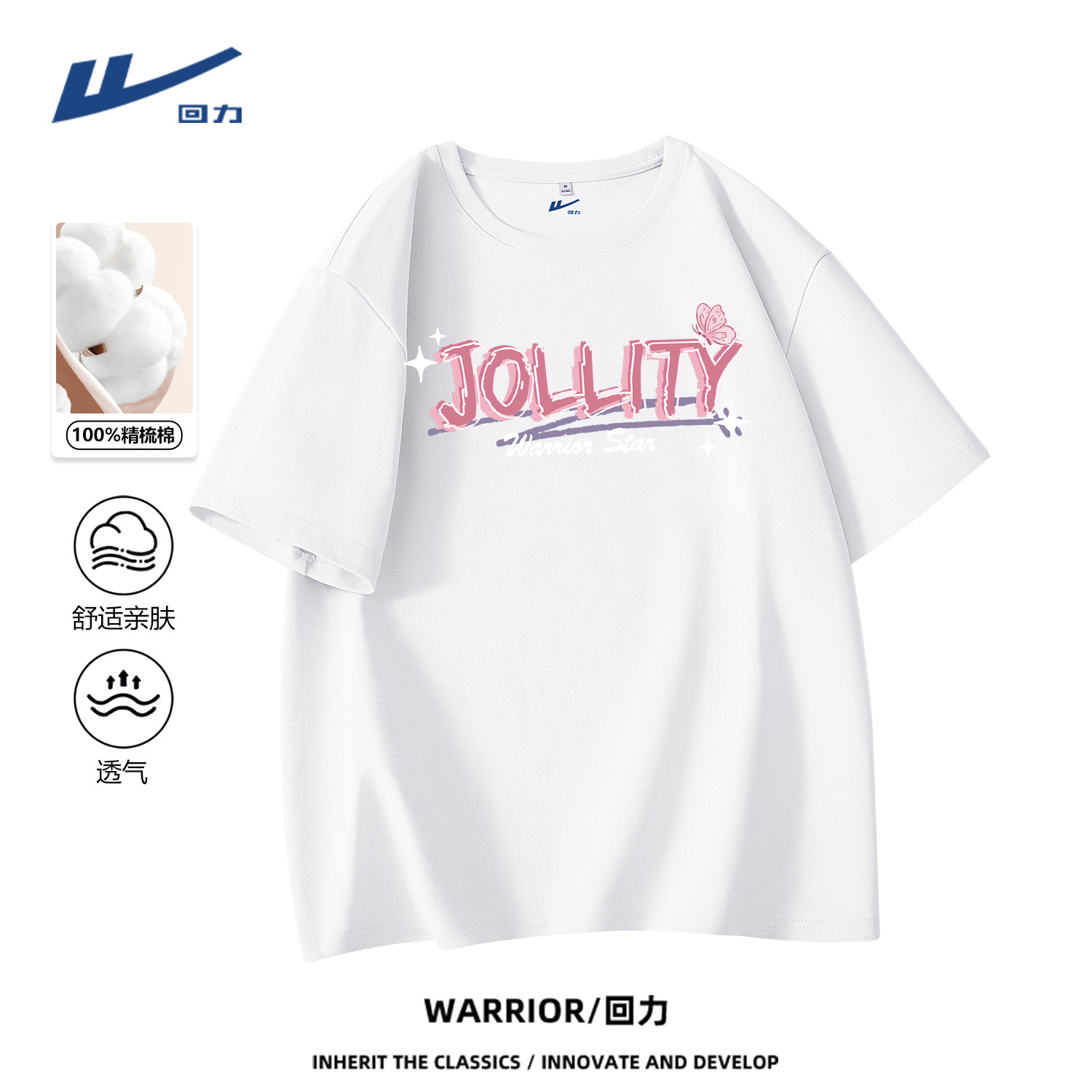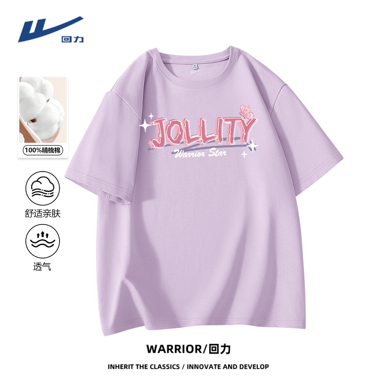 回力浅粉色短袖女t恤春夏2026新款大码宽松上衣纯棉透气体恤衫DD