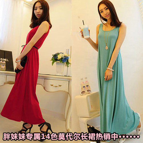 春夏砚林款大码女装胖连衣裙韩版背心裙长裙波西米亚拖地裙沙滩裙