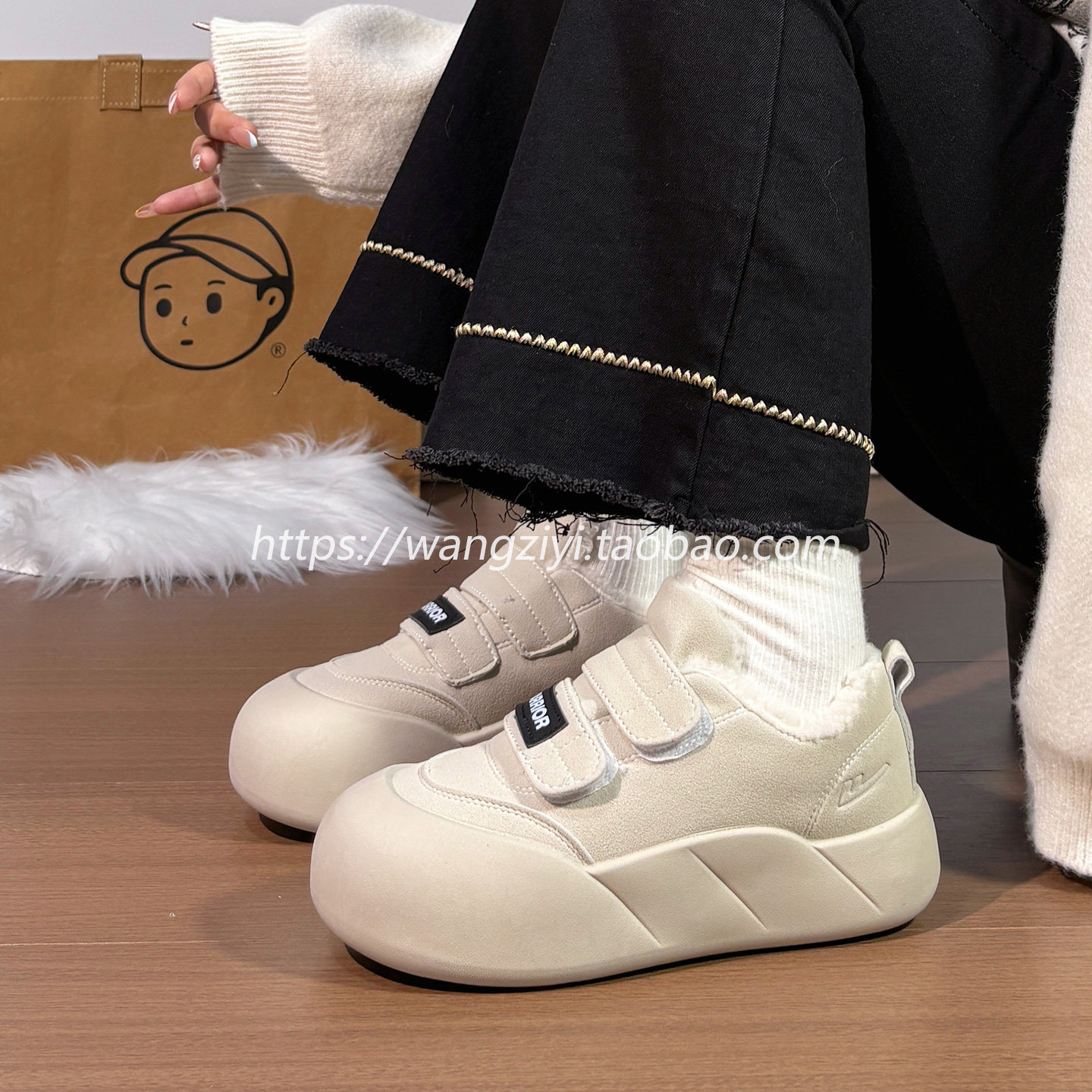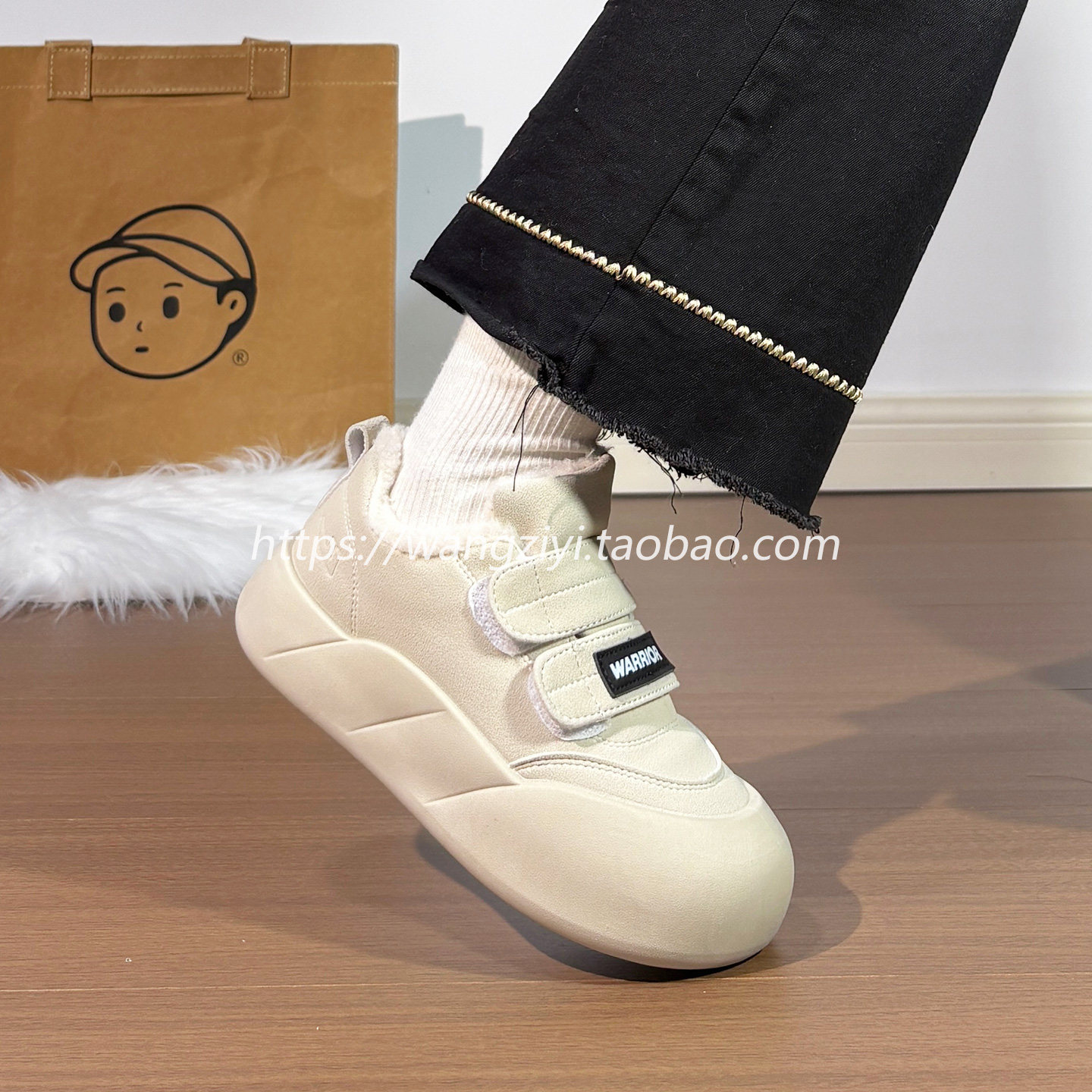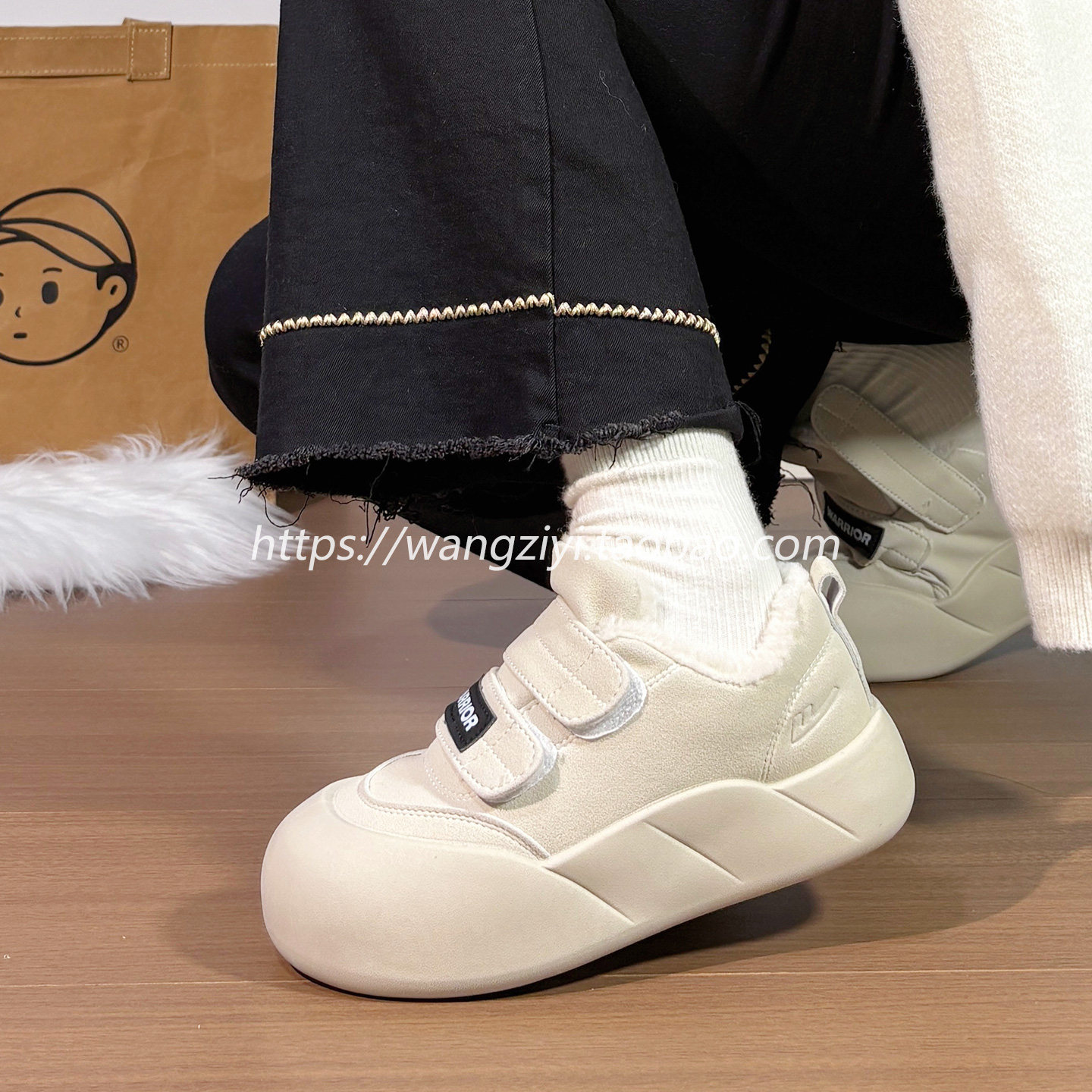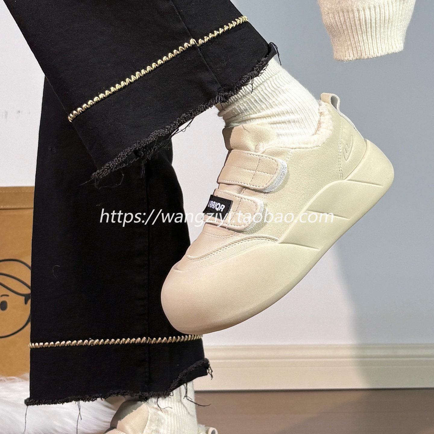 回力冬季新款二棉鞋女加绒保暖小白鞋原创百搭复古魔术贴厚底板鞋