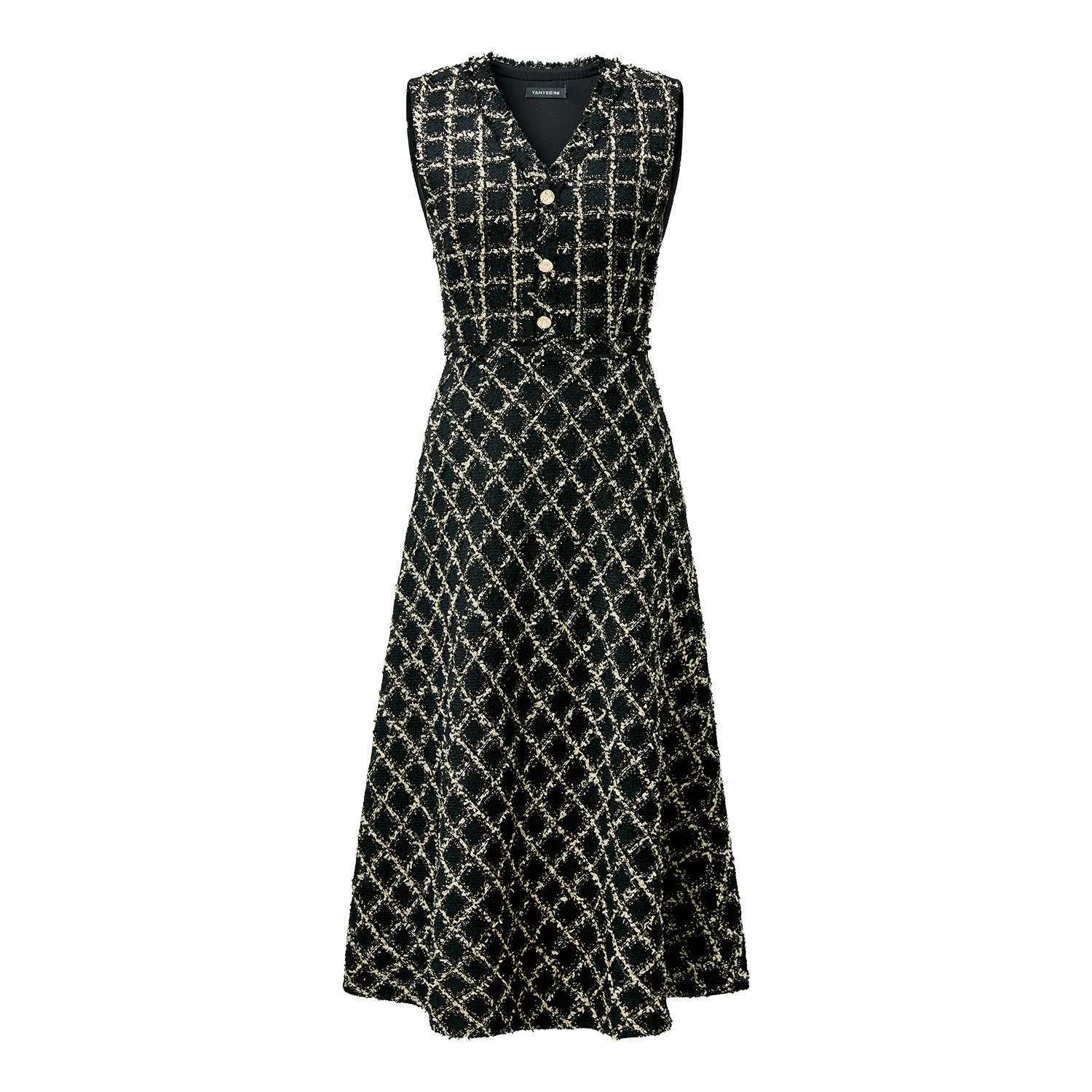 颜域百搭显瘦黑色V领背心连衣裙
