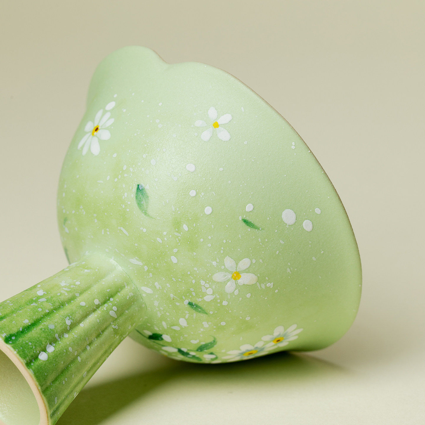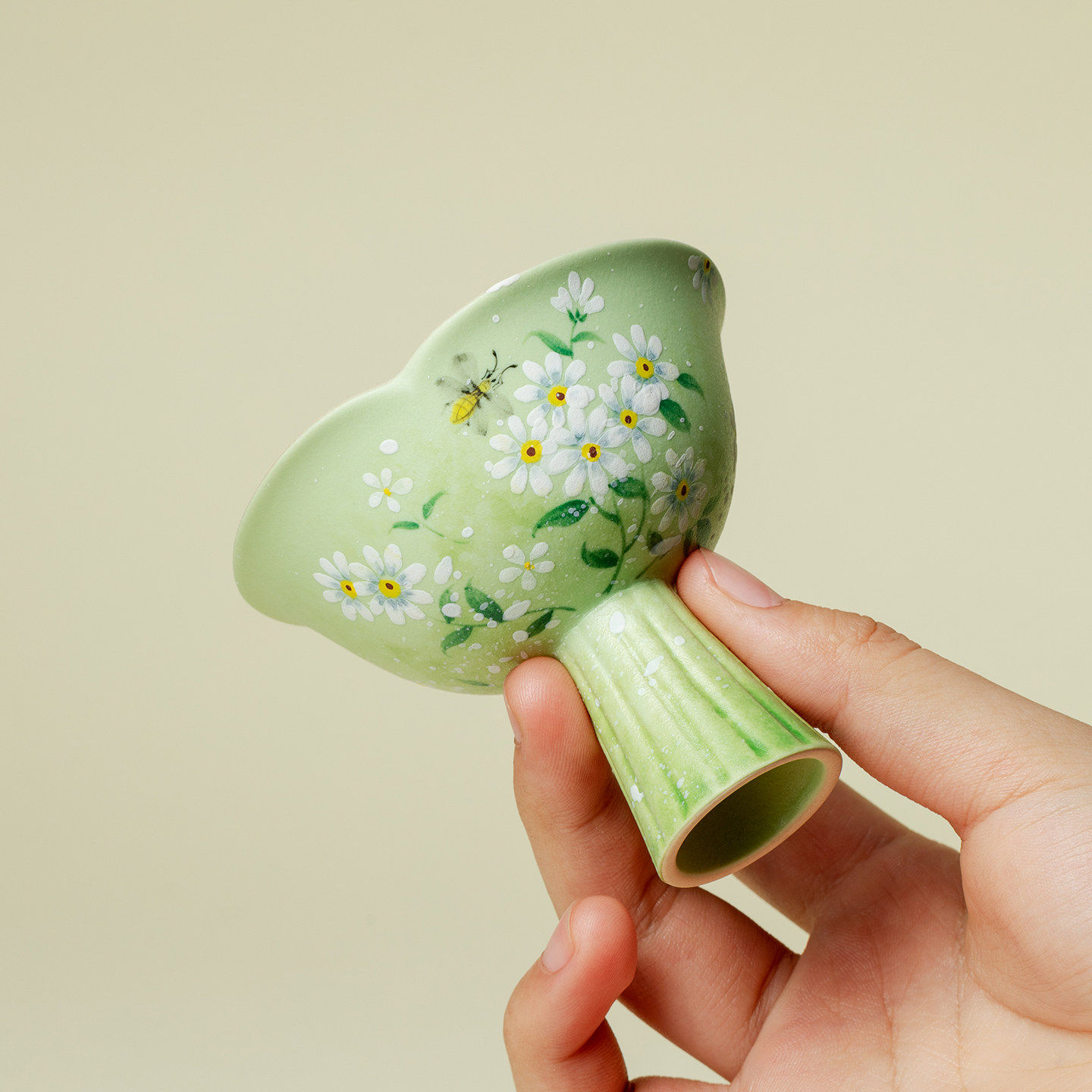 里作 青野手绘雏菊高足茶杯高端陶瓷主人杯高颜值女士个人品茗杯