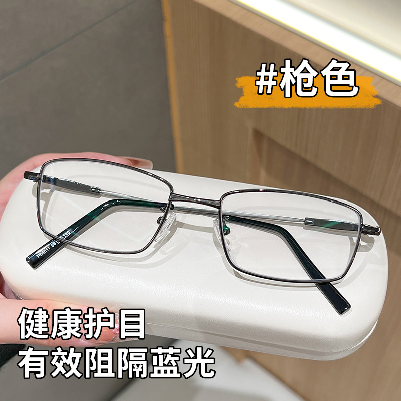 超轻商务方框近视眼镜男款专业网上配镜枪色全框防蓝光眼睛架镜框