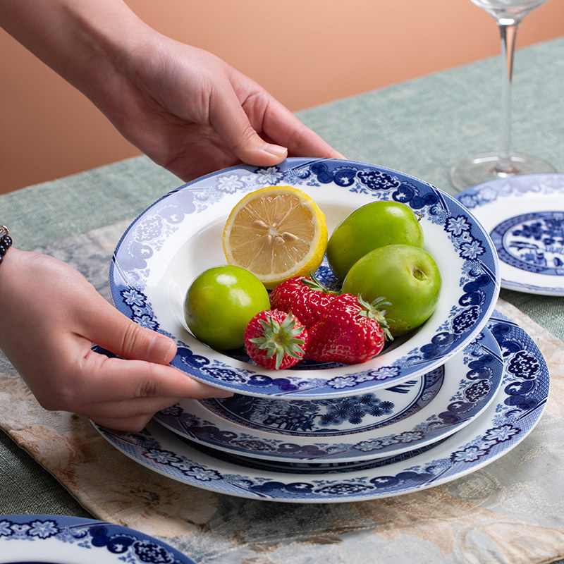 红叶瓷器陶瓷景德镇中式碗碟盘套装家用古典园林青花瓷礼盒餐具组