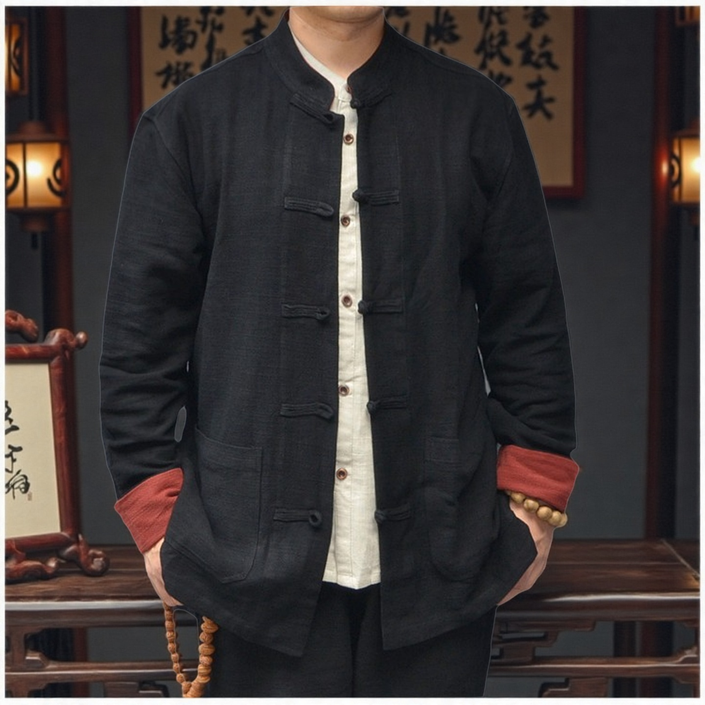 大码唐装男款外套春秋季复古长袖棉麻中国风潮风立领禅意中式上衣