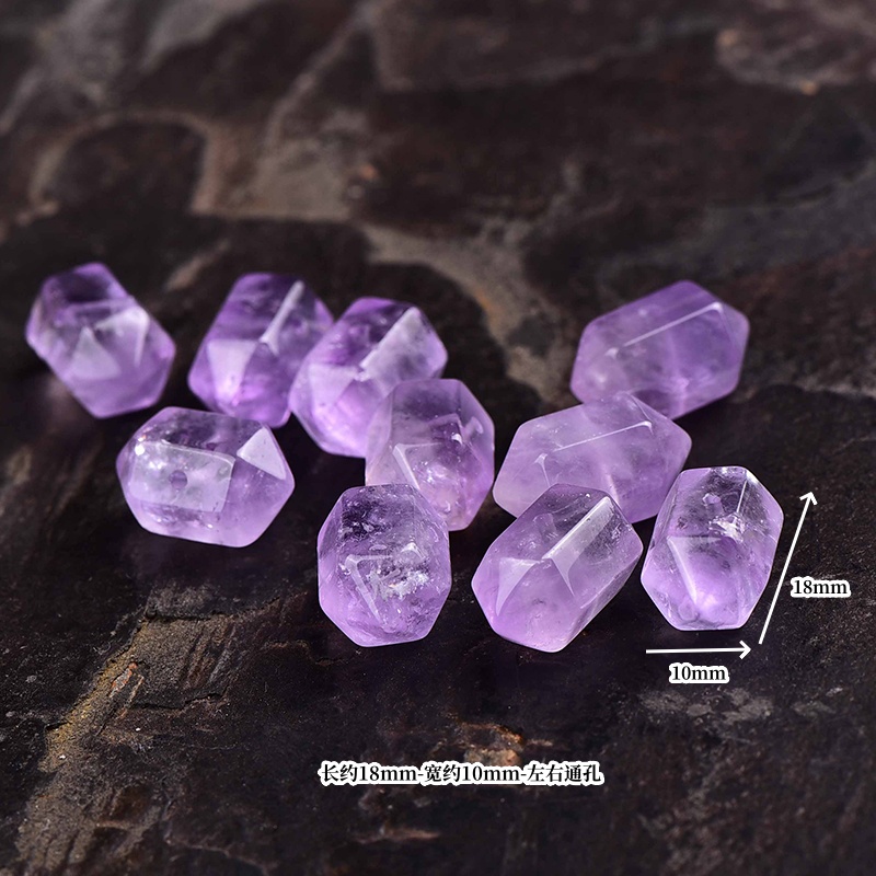 7A天然紫黄粉白水晶散珠子双尖六棱珠男女士手串手工diy手链项链