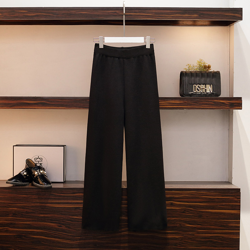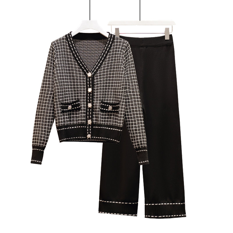 中年胖妈妈秋装秋冬大码针织套装老年人女装上衣两件套阔腿裤外套
