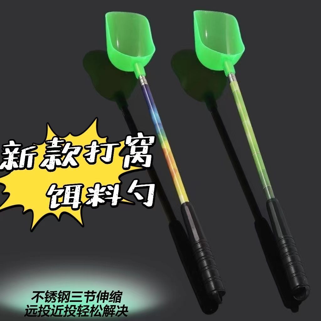 打窝勺可伸缩不锈钢打窝器钓鱼打饵勺垂钓抛饵勺三节伸缩打饵料勺