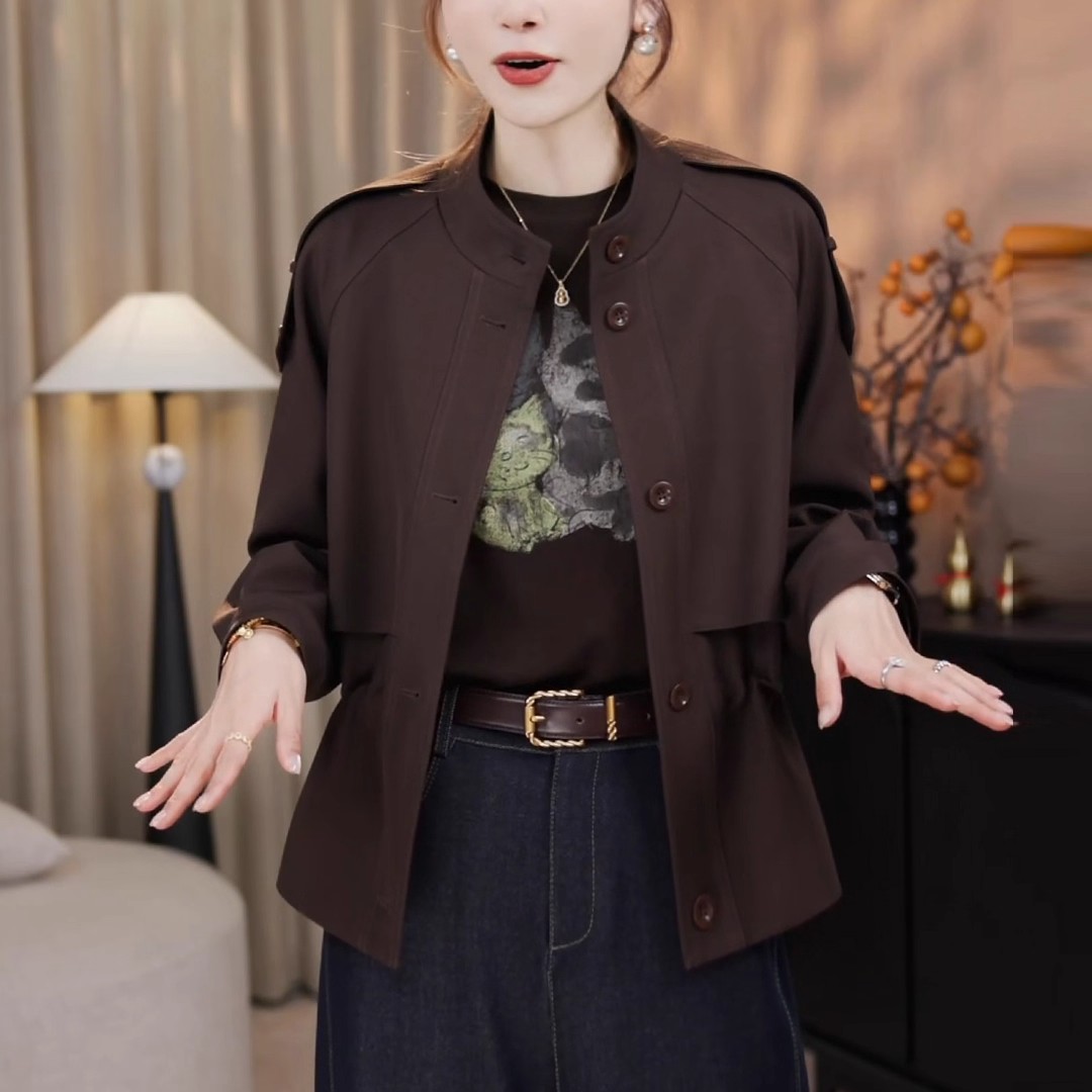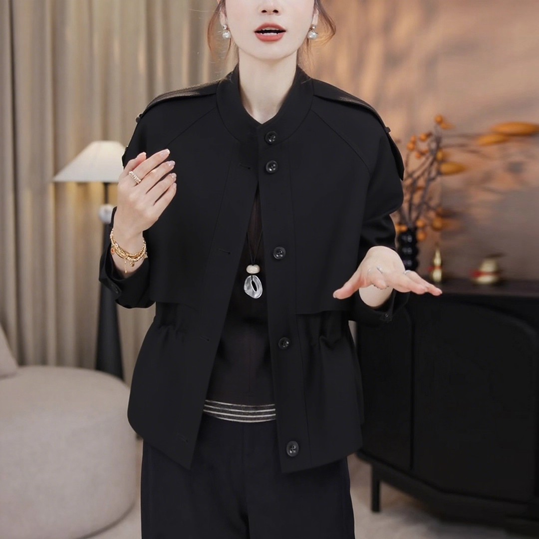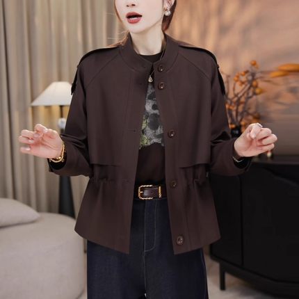 时尚英伦风夹克短外套女早秋高级感百搭休闲小立领宽松风衣小外套