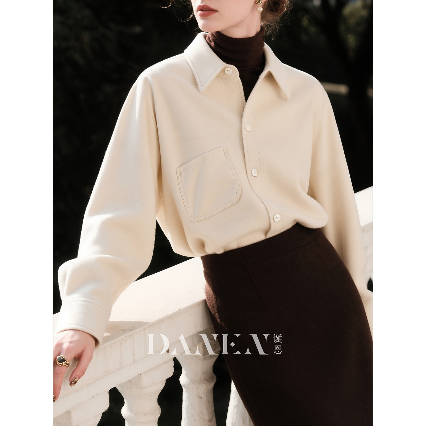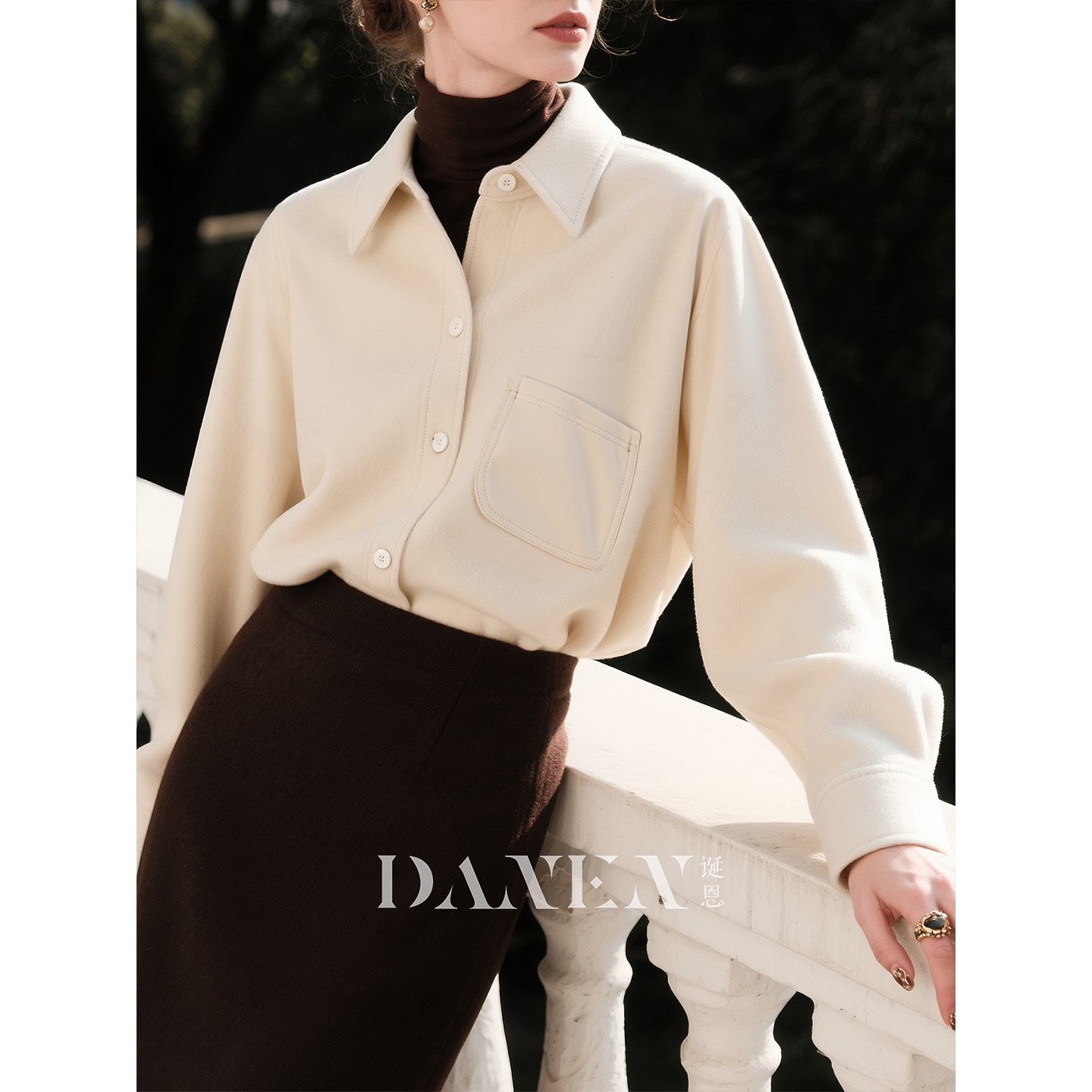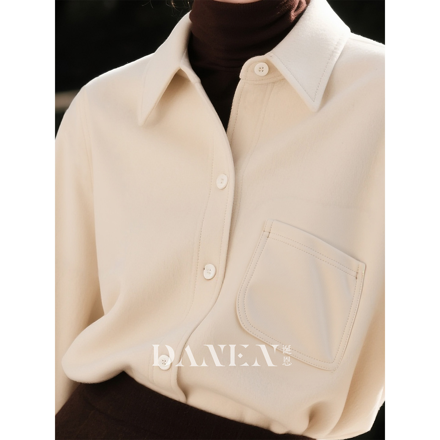 米白色磨毛衬衫女2026年秋冬新款长袖宽松别致叠穿衬衣气质上衣
