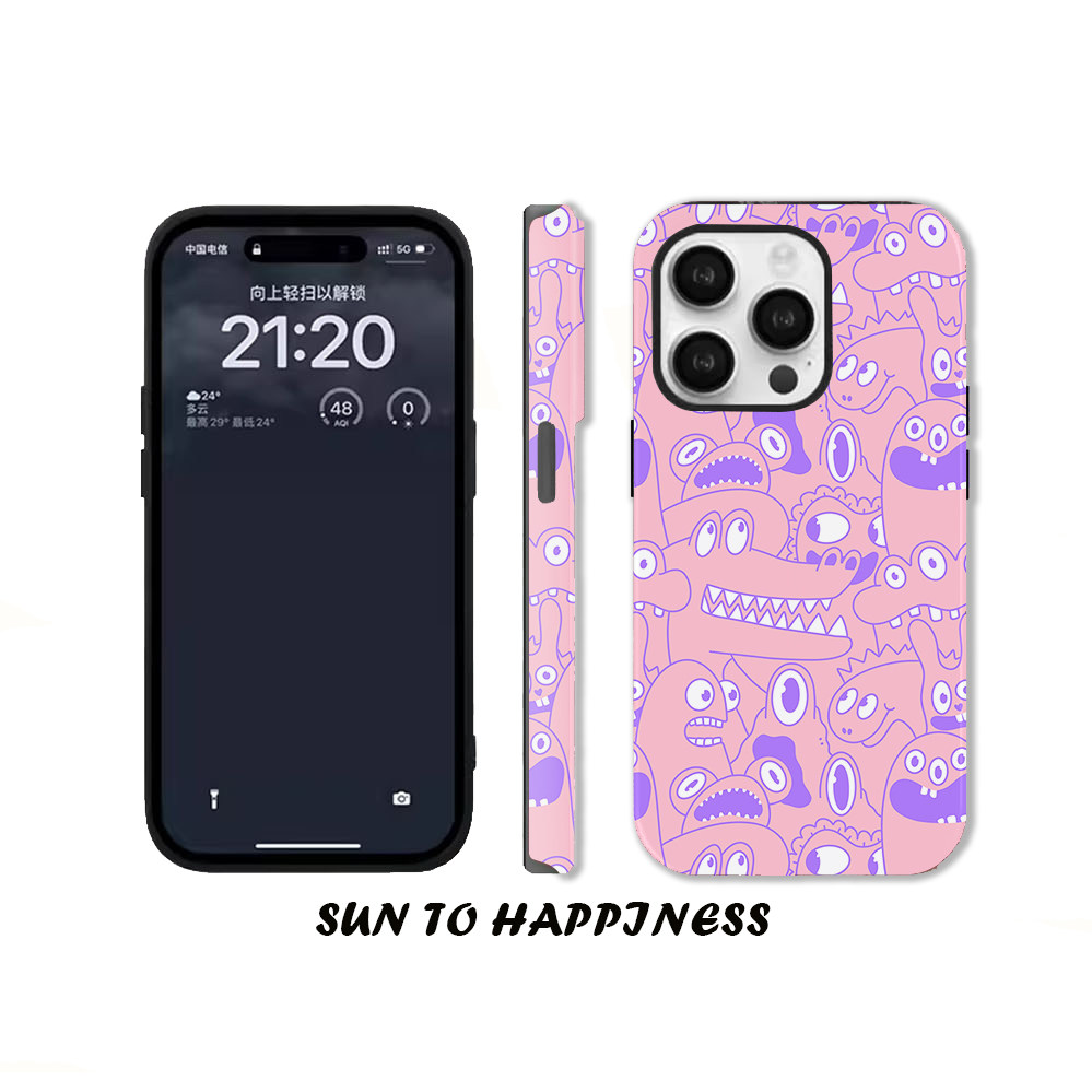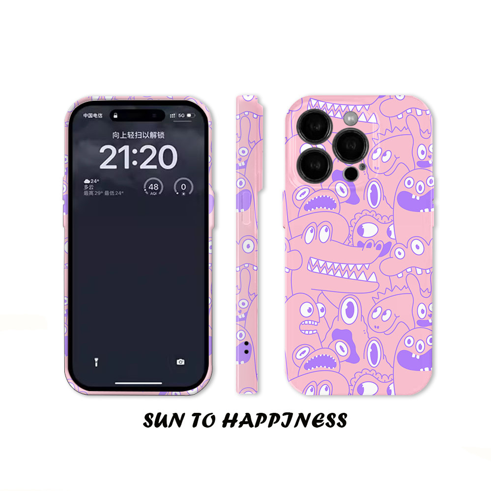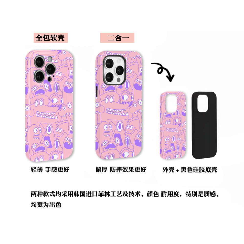 原创日韩粉色怪兽家族适用苹果17PROMAX菲林手机壳iphone16plus软壳15趣味卡通萌系14可爱华为全包小众二合一