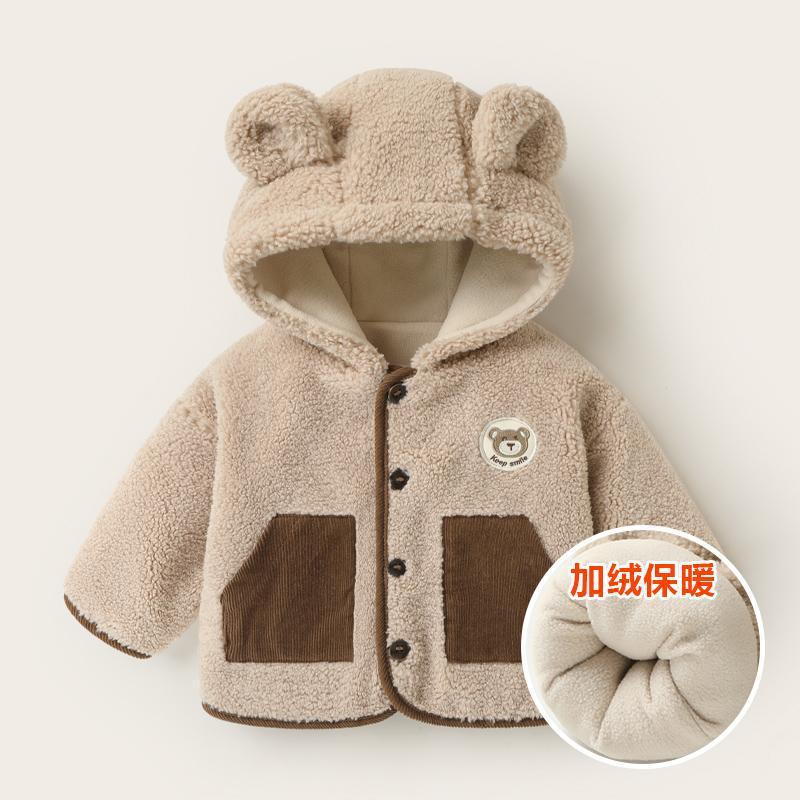 婴儿冬装衣服毛毛连帽外套加厚男童秋冬新款棉袄棉服宝宝保暖上衣