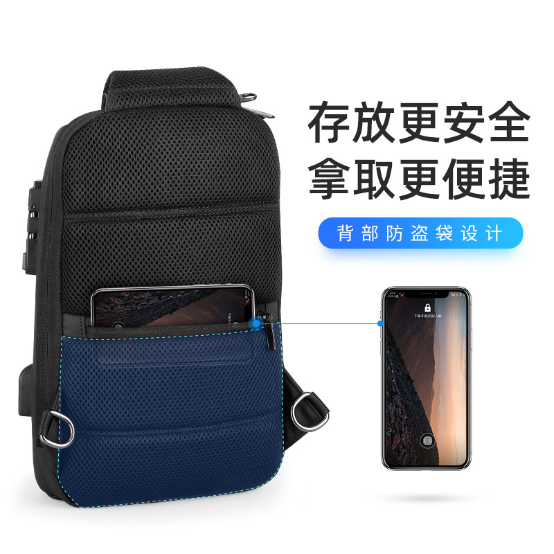 马可·莱登密码锁防盗胸包男士斜挎包多功能大容量休闲商务单肩包