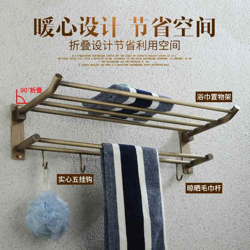 全铜浴室挂件毛巾架免打孔卫生间浴巾架子卫浴五金置物架组合套装