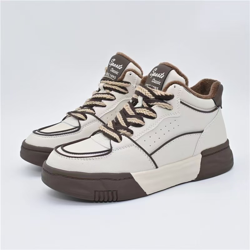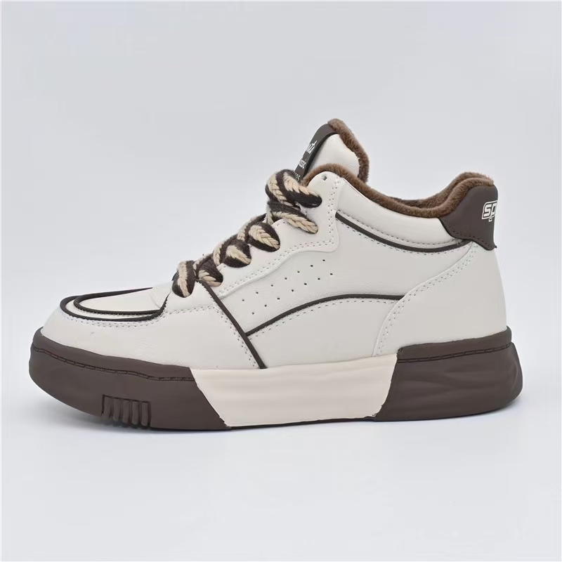大东板鞋女2024冬季新款时尚休闲中跟平底圆头系带舒适加绒运动鞋