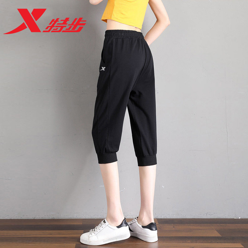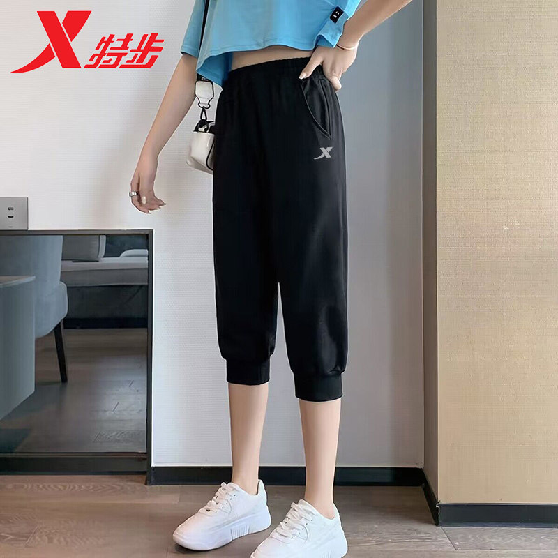 特步七分裤女夏季宽松大码休闲裤针织薄款透气束脚正品运动裤女裤