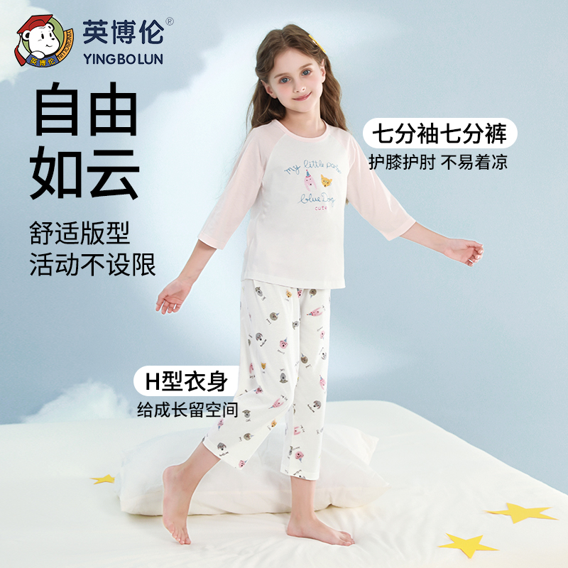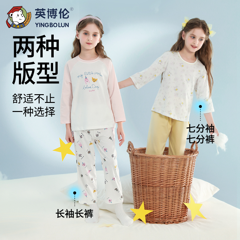 英博伦2025薄款女童睡衣春秋纯棉小女孩空调服夏季儿童家居服套装