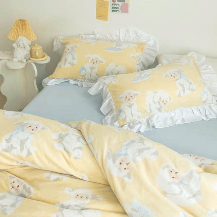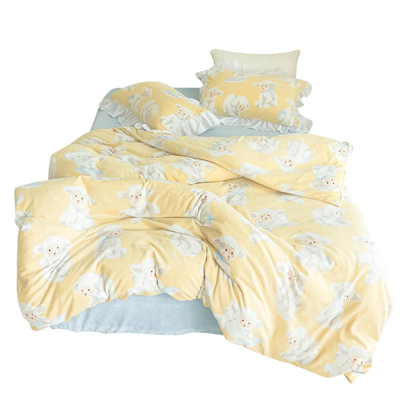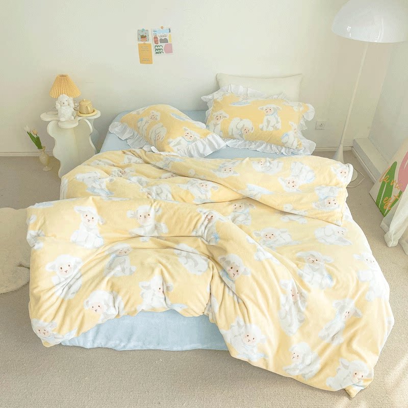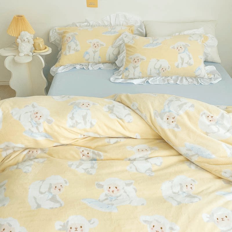 温暖小羊 原创昭和风卡通奶油绒三四件套单双人床单被套冬保暖绒