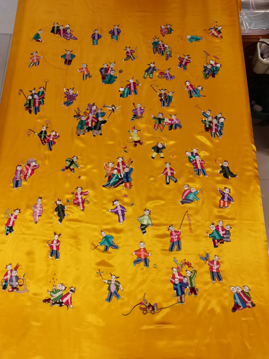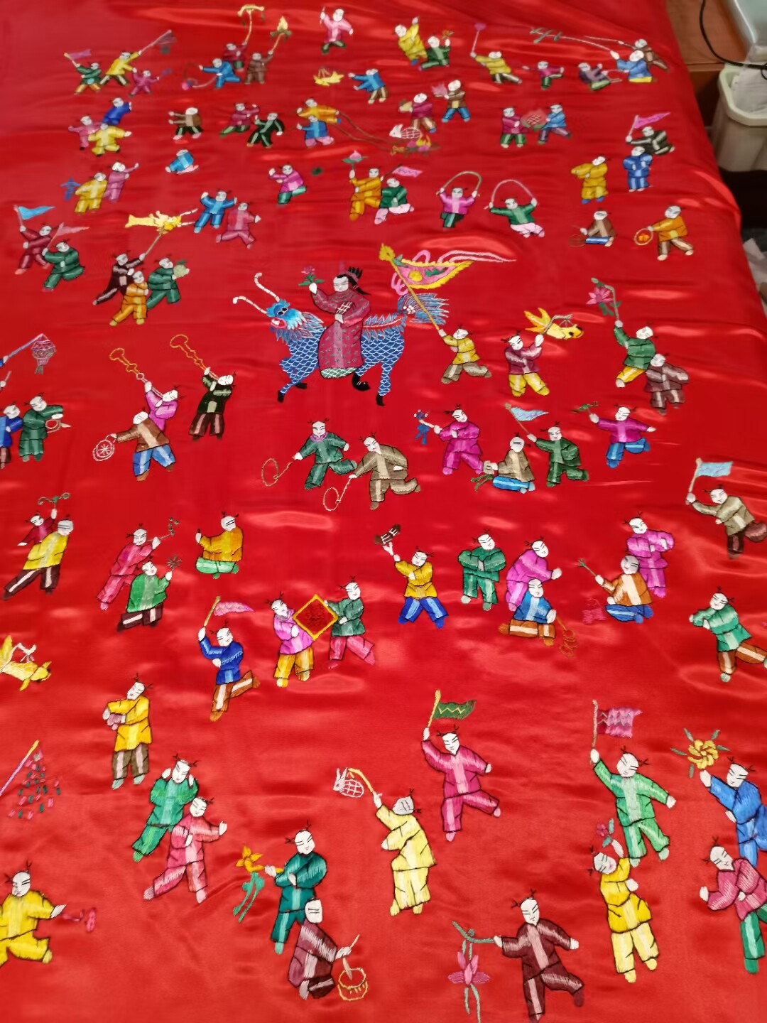 百子图真丝被面结婚庆 杭州丝绸软缎被面桑蚕丝被套手工绣花100个