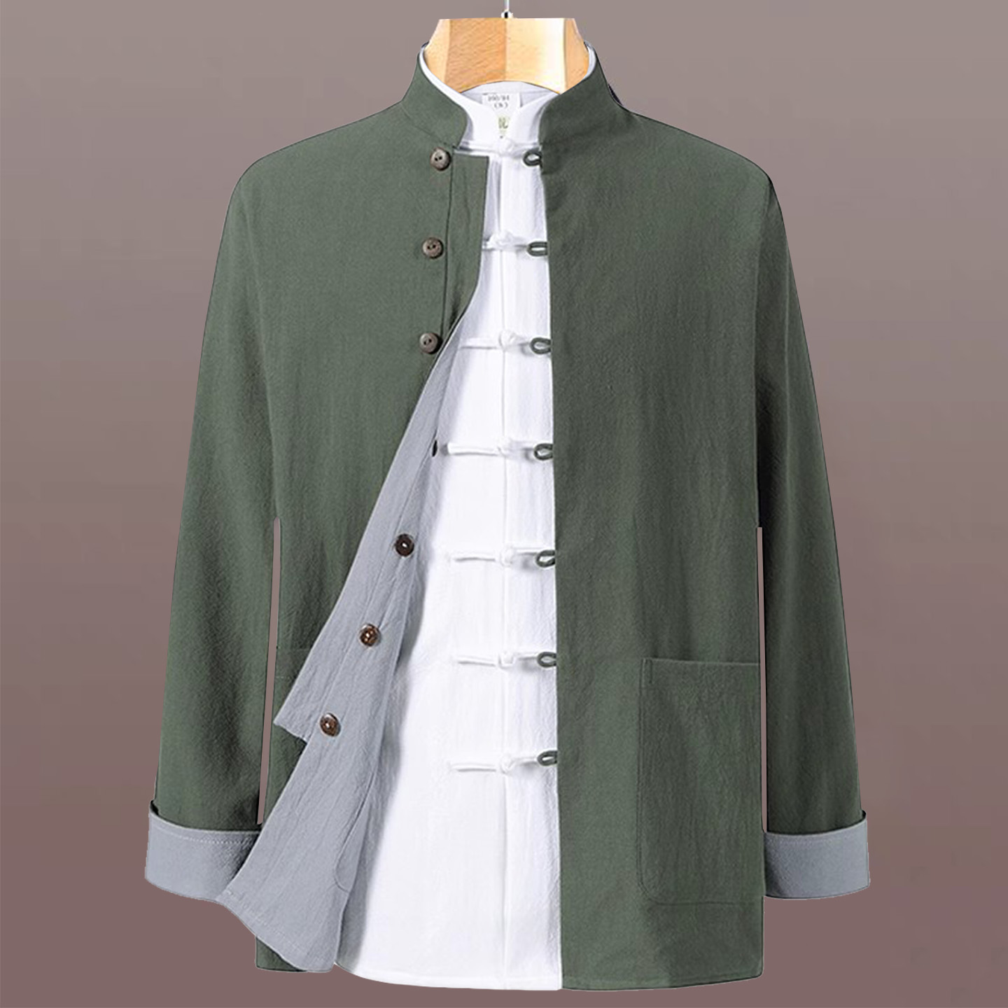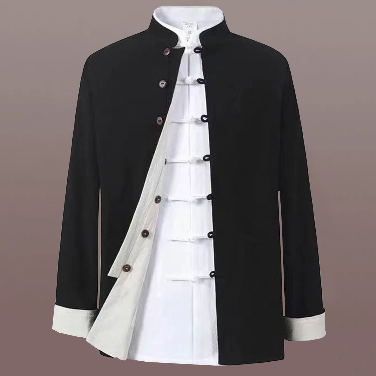 唐装上衣双面穿中老年男装纯棉中式立领外套两面穿中国风爸爸春秋