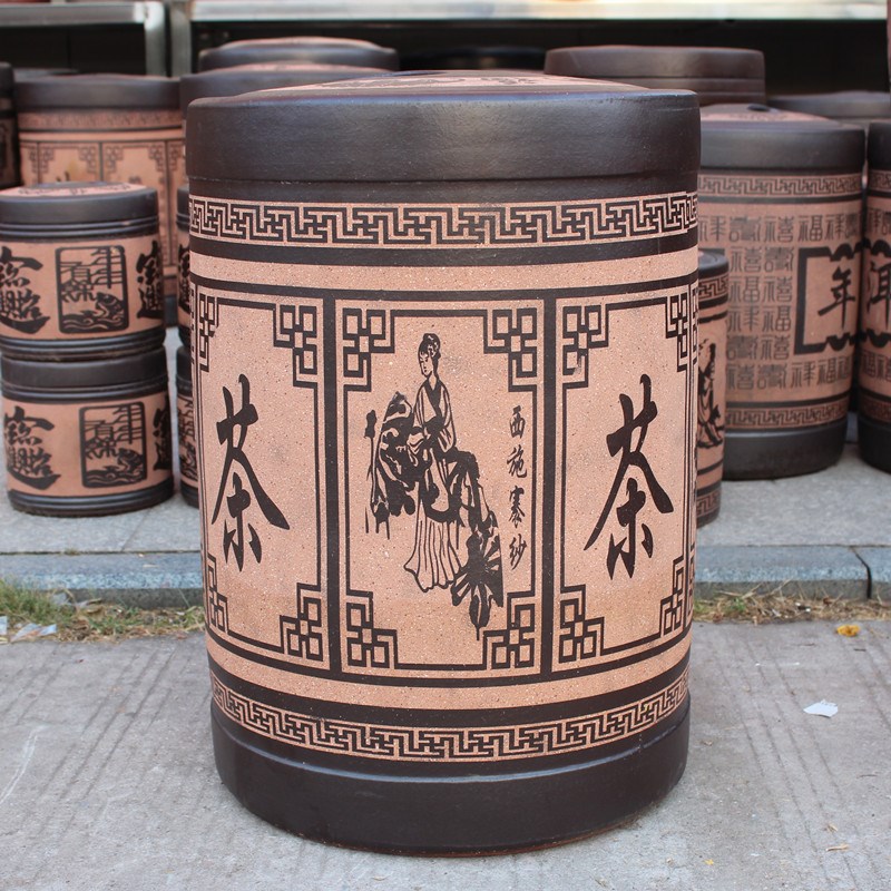宜兴大号紫砂茶叶罐普洱饼茶罐特大茶叶缸储茶罐粗陶瓷密封存茶罐