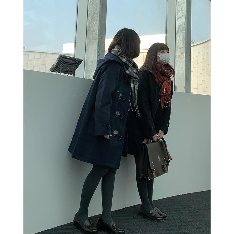 墨秋jk小熊仔加厚呢子大衣日系学院风牛角扣小个子夹棉毛呢外套女