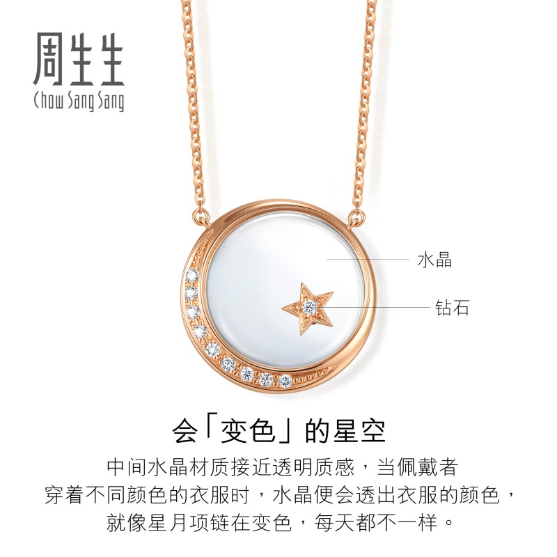 周生生18K金爱情密语星星钻石水晶项链92038N